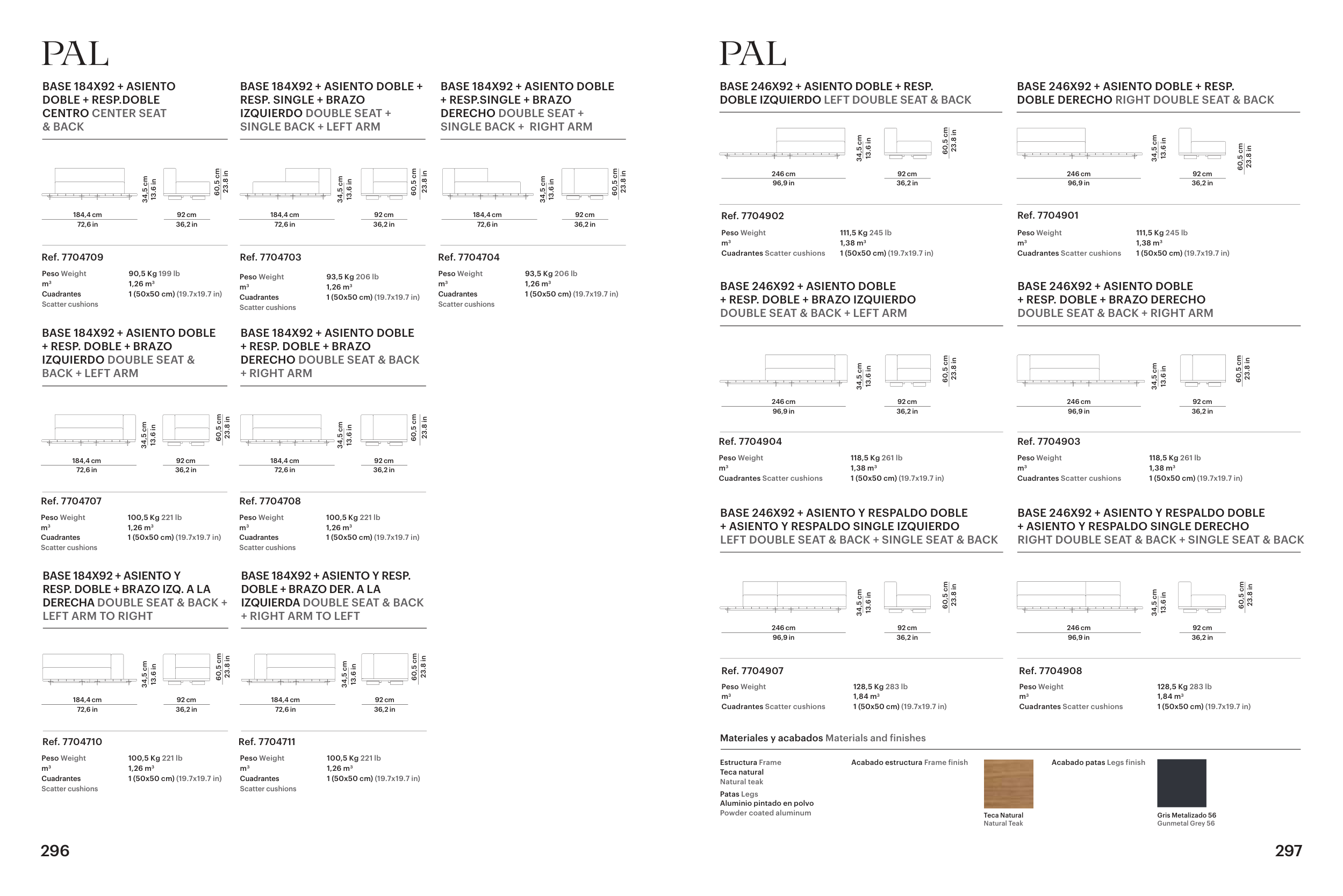 BASE 246X92 + ASIENTO Y RESPALDO DOBLE