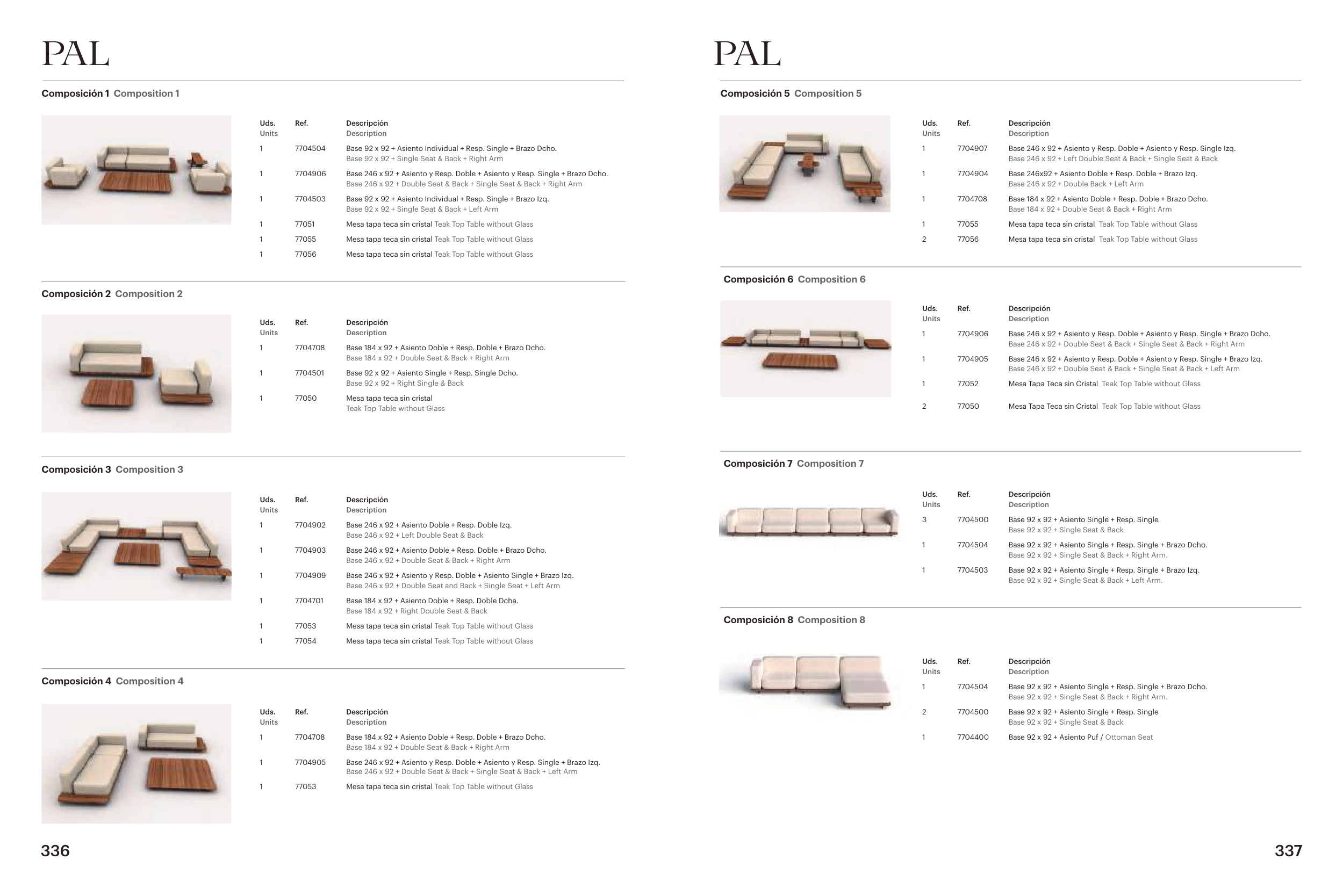 Base 246 x 92 + Asiento y Resp. Doble + Asiento y Resp. Single + Brazo Izq.