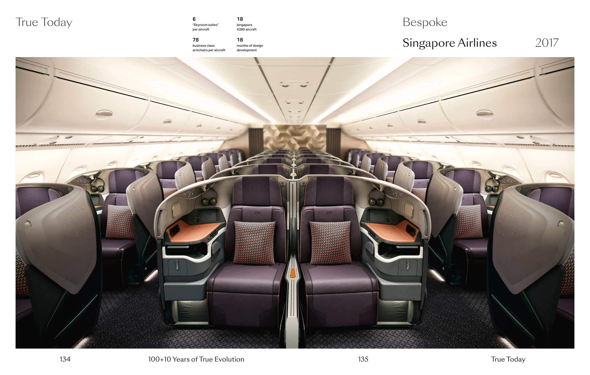 134 135 True Today 100+10 Years of True Evolution Bespoke Singapore Airlines 2017 True Today “Skyroom suites” per aircraft business class armchairs per aircraft bingapore A380 aircraft months of design development 6 78 18 18