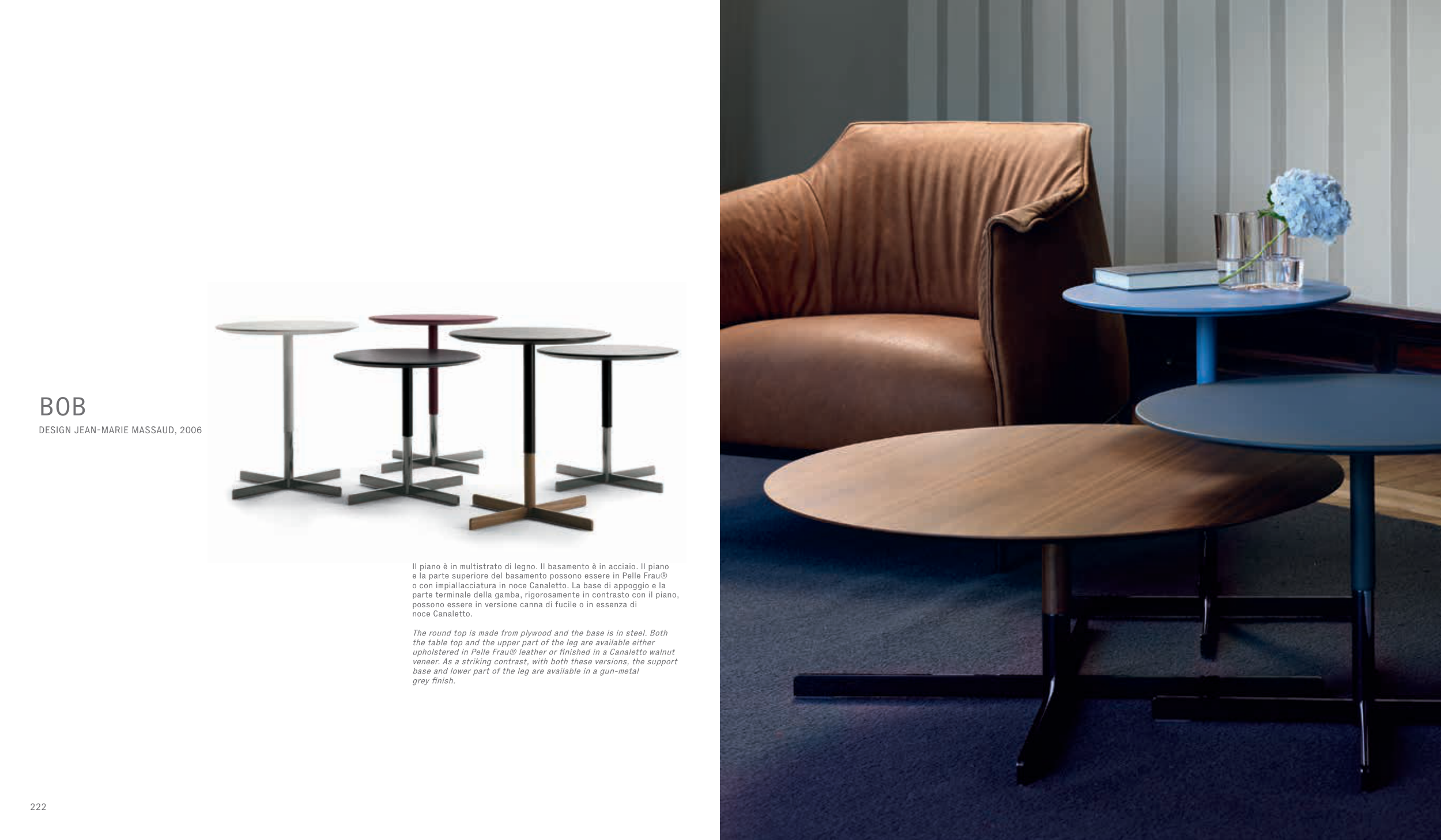 upholstered in Pelle Frau® leather or finished in a Canaletto walnut