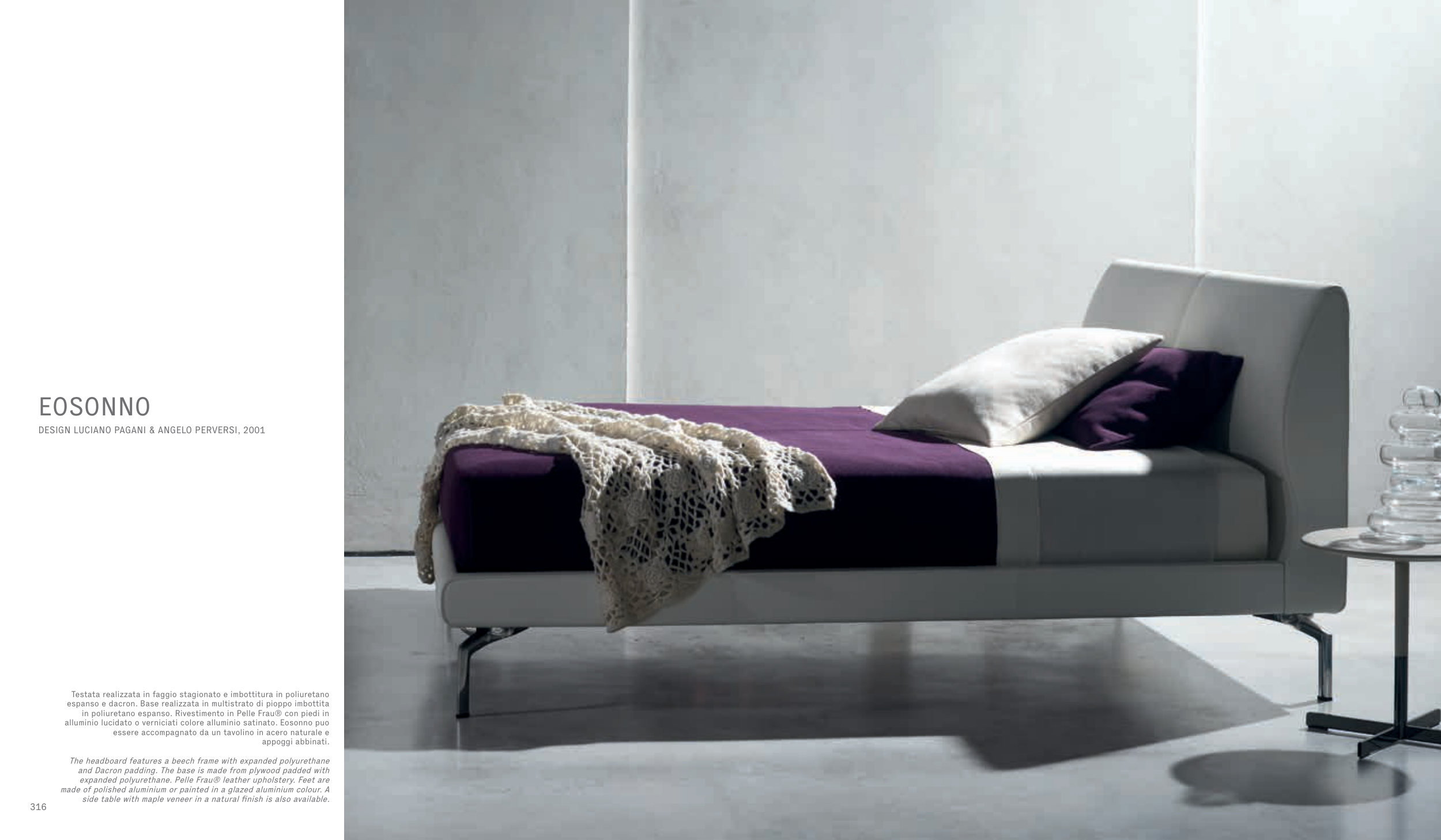 in poliuretano espanso. Rivestimento in Pelle Frau® con piedi in
