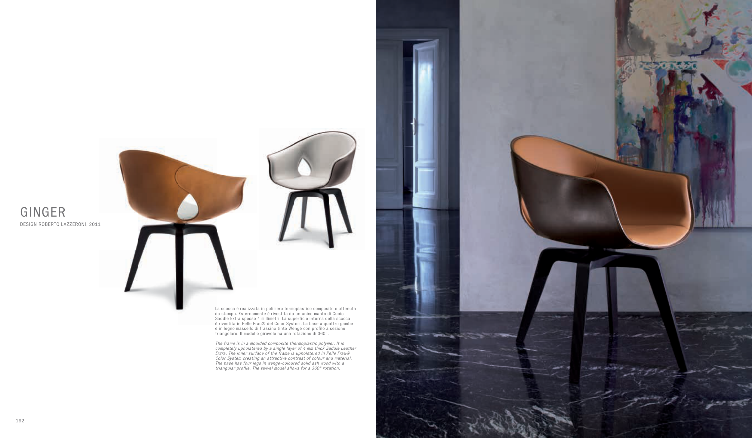 Extra. The inner surface of the frame is upholstered in Pelle Frau®