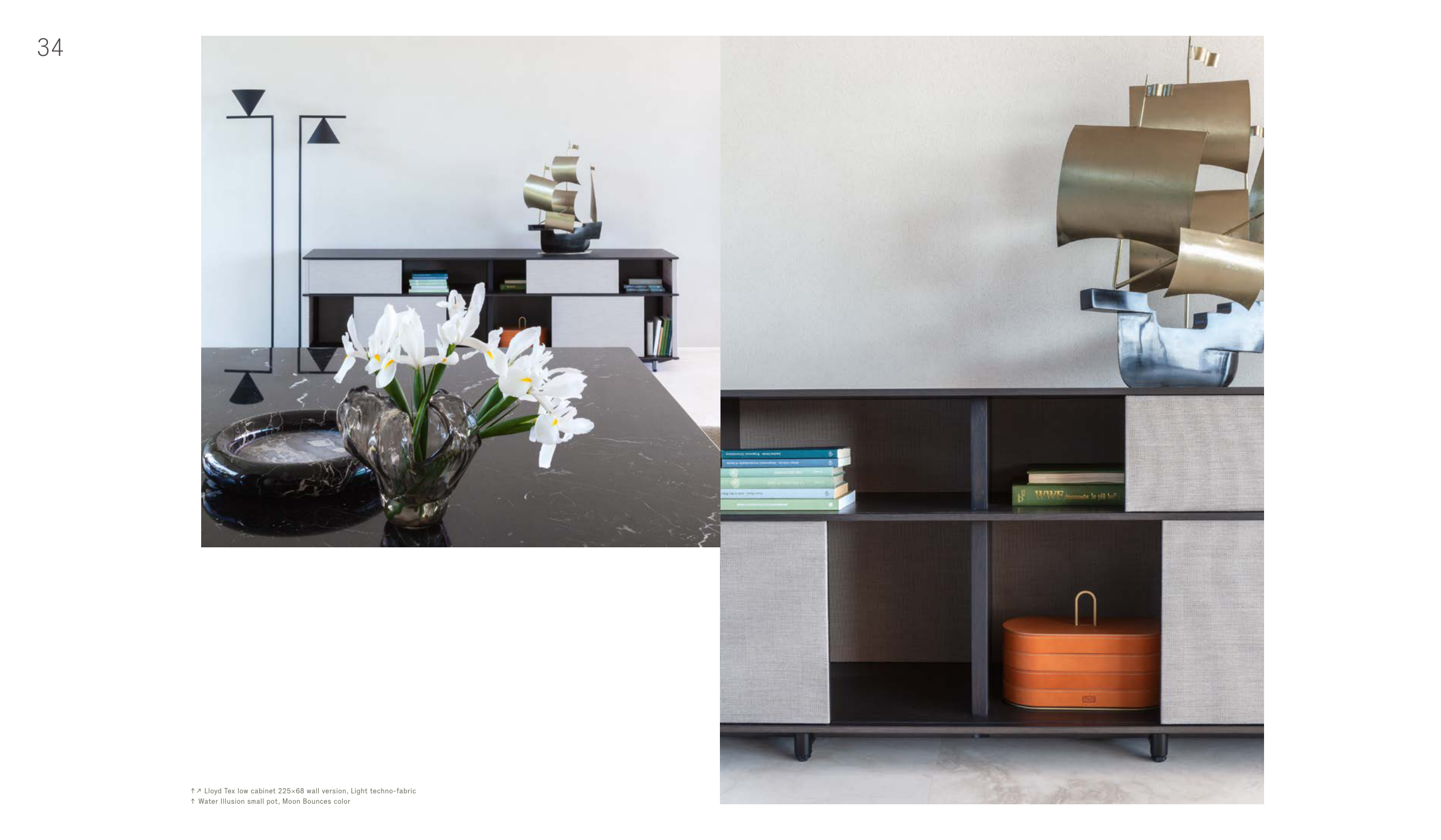 ↑↗ Lloyd Tex low cabinet 225×68 wall version, Light techno-fabric