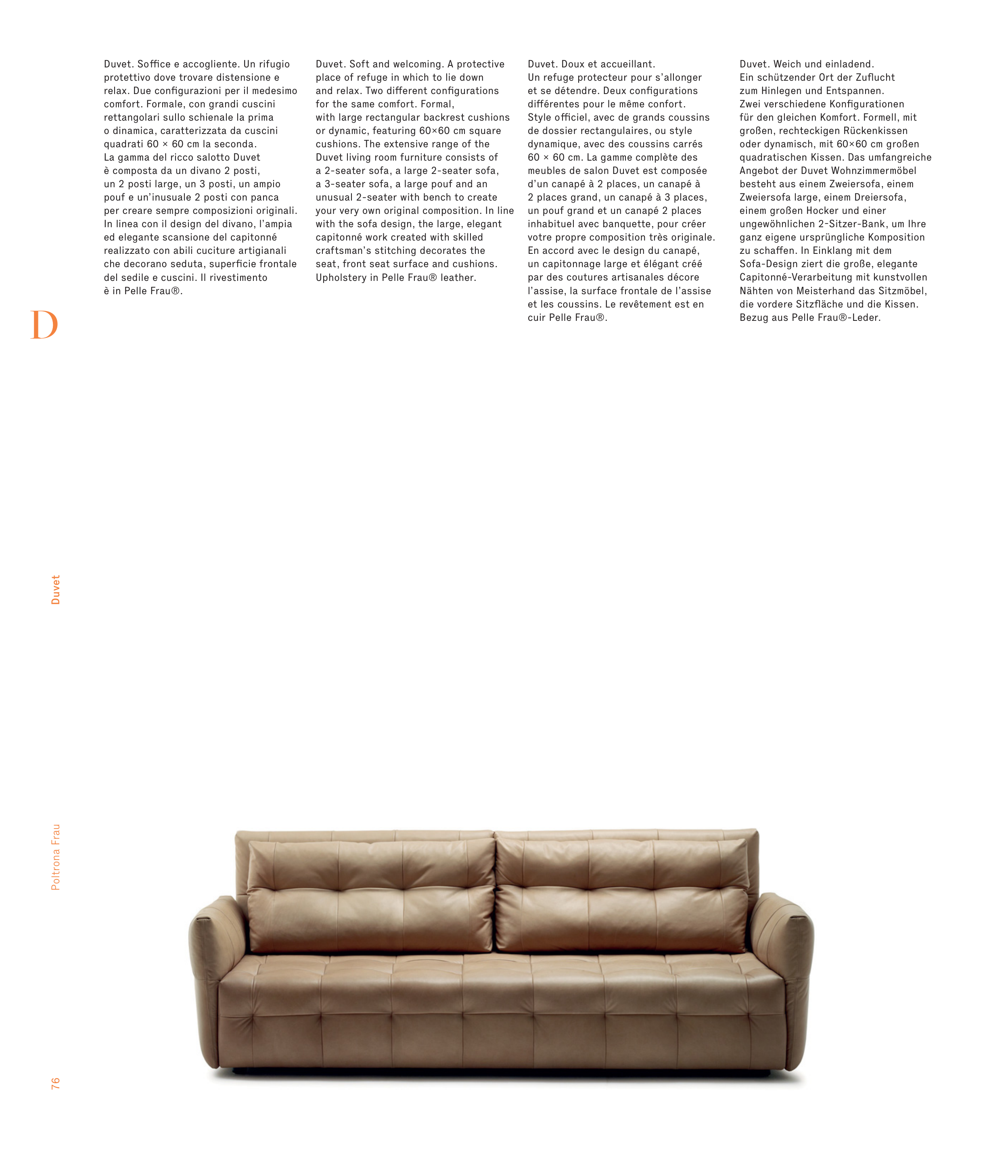 Upholstery in Pelle Frau® leather.