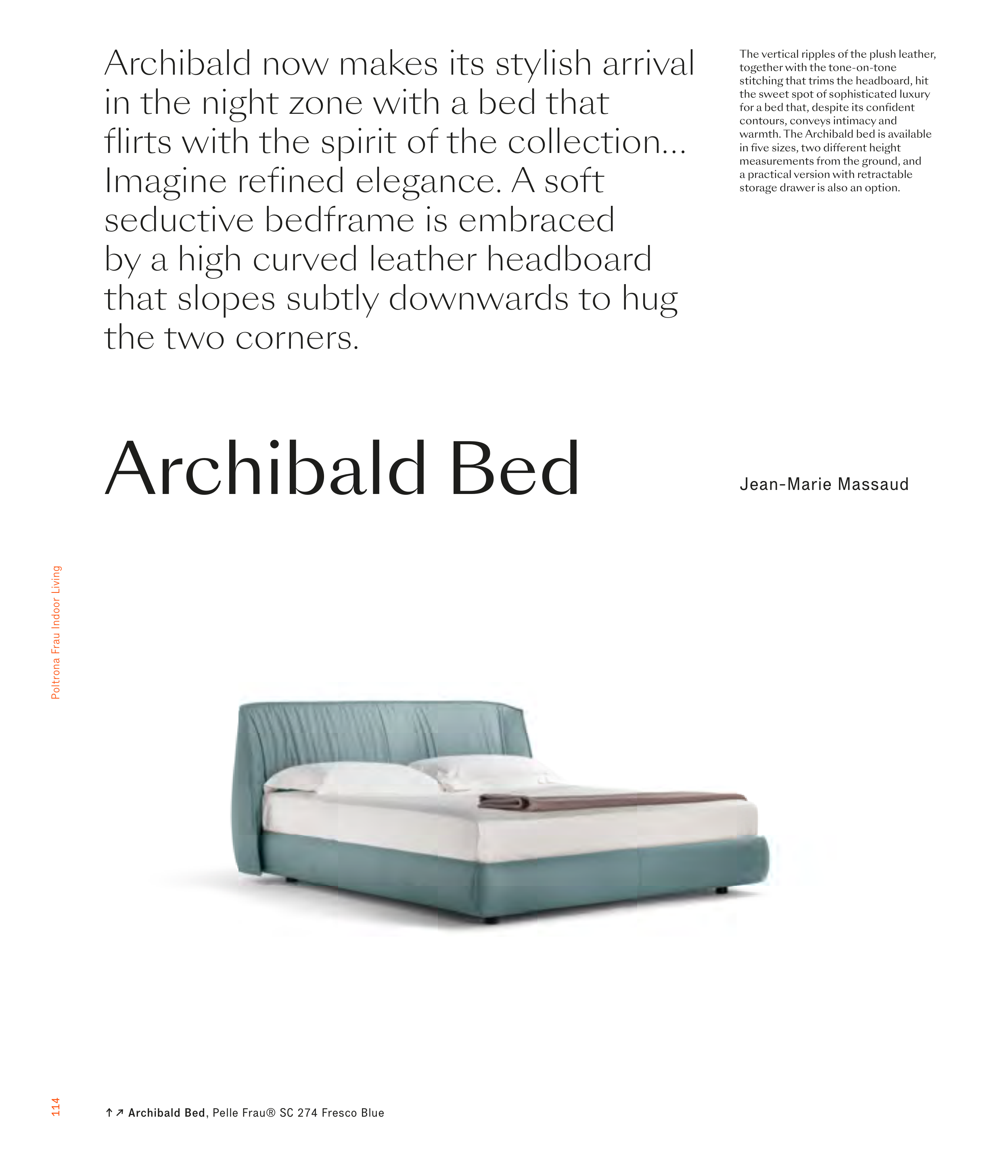 ↑↗ Archibald Bed, Pelle Frau® SC 274 Fresco Blue