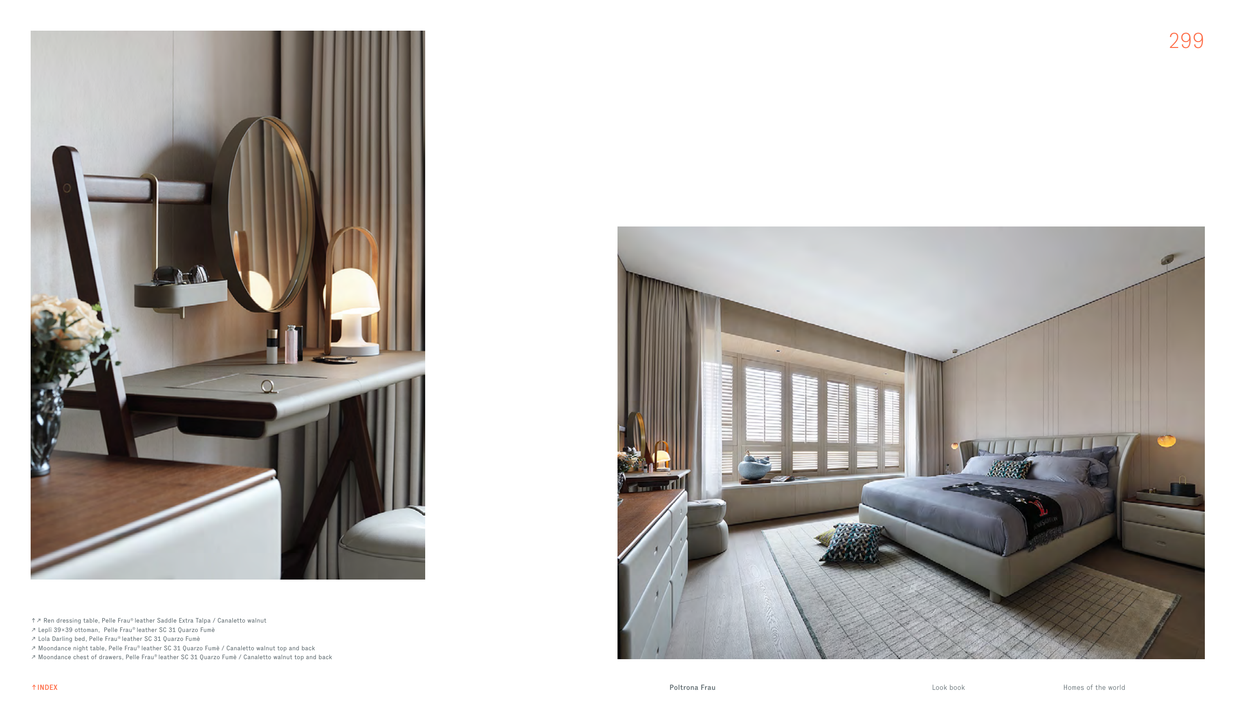 ↑↗ Ren dressing table, Pelle Frau® leather Saddle Extra Talpa / Canaletto walnut