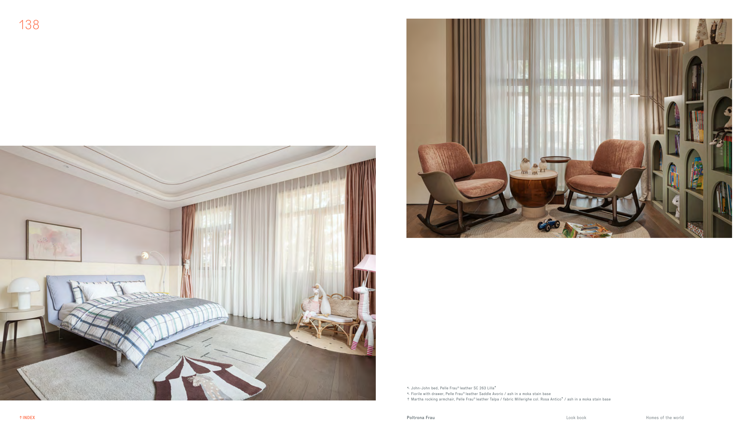 ↑ Martha rocking armchair, Pelle Frau® leather Talpa / fabric Millerighe col. Rosa Antico* / ash in a moka stain base