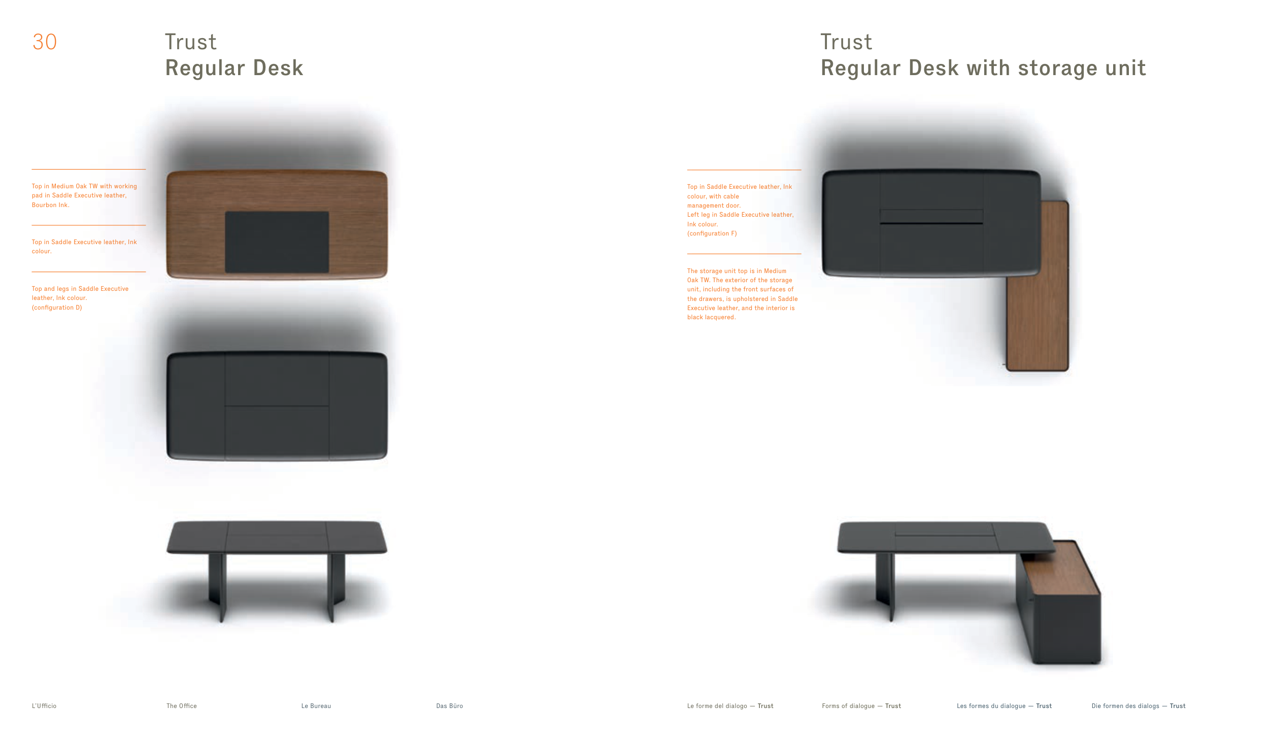the drawers, is upholstered in Saddle