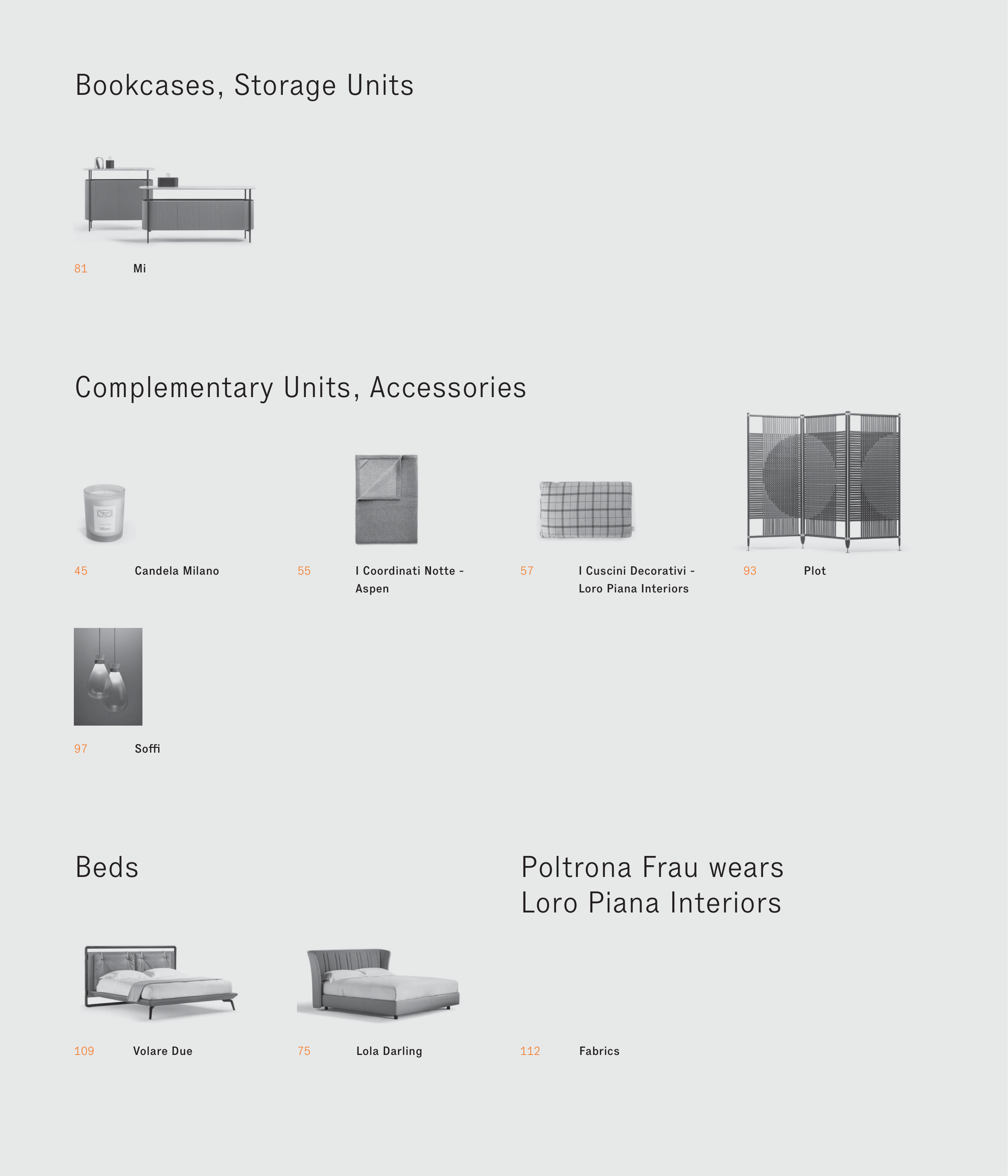 Poltrona Frau wears Loro Piana Interiors Bookcases, Storage Units Beds Complementary Units, Accessories Plot 93 Soffi 97 55 Candela Milano 45 I Cuscini Decorativi - Loro Piana Interiors I Coordinati Notte - Aspen 57 Mi Volare Due Lola Darling Fabrics 81 109 75 112