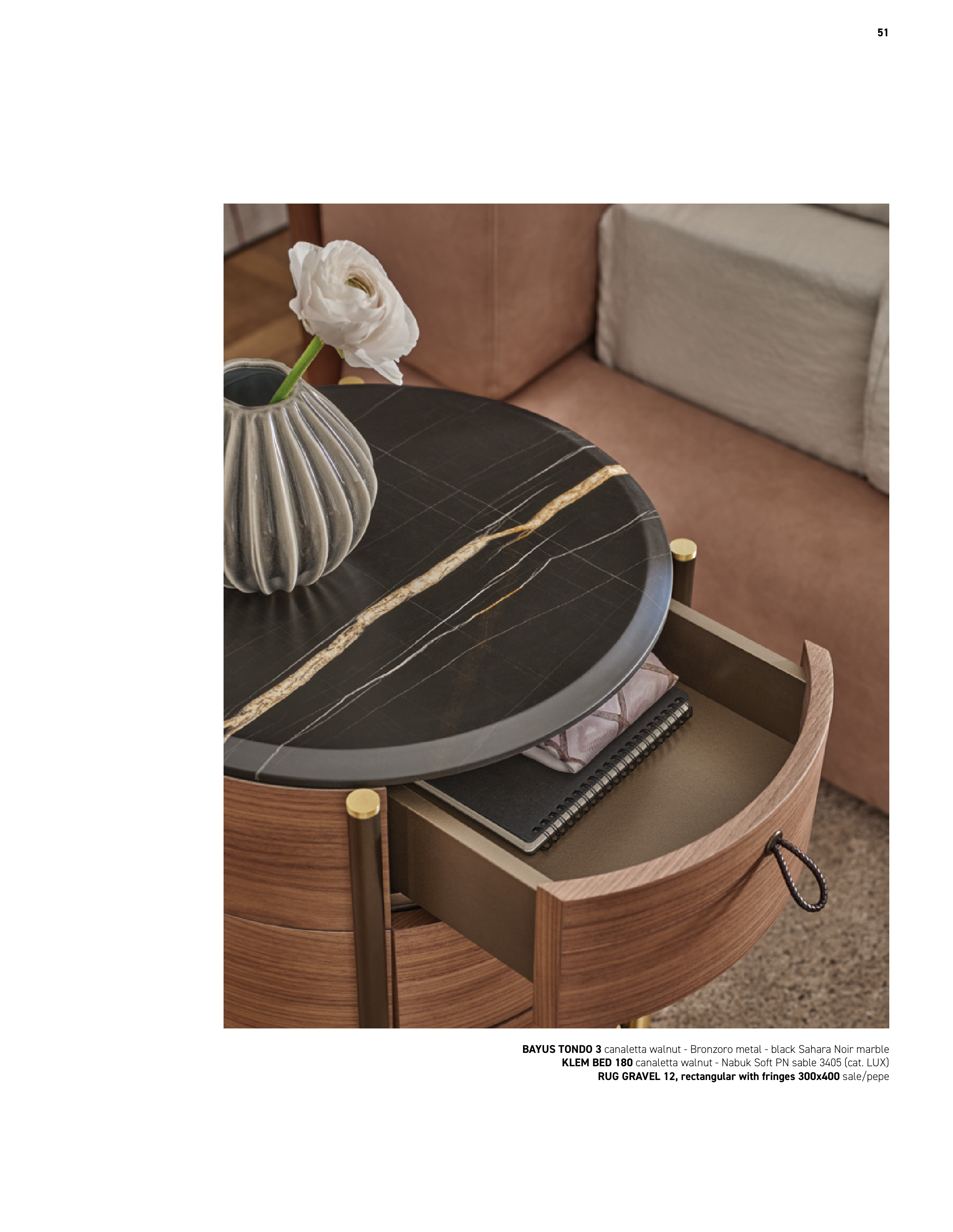 BAYUS TONDO 3 canaletta walnut - Bronzoro metal - black Sahara Noir marble
