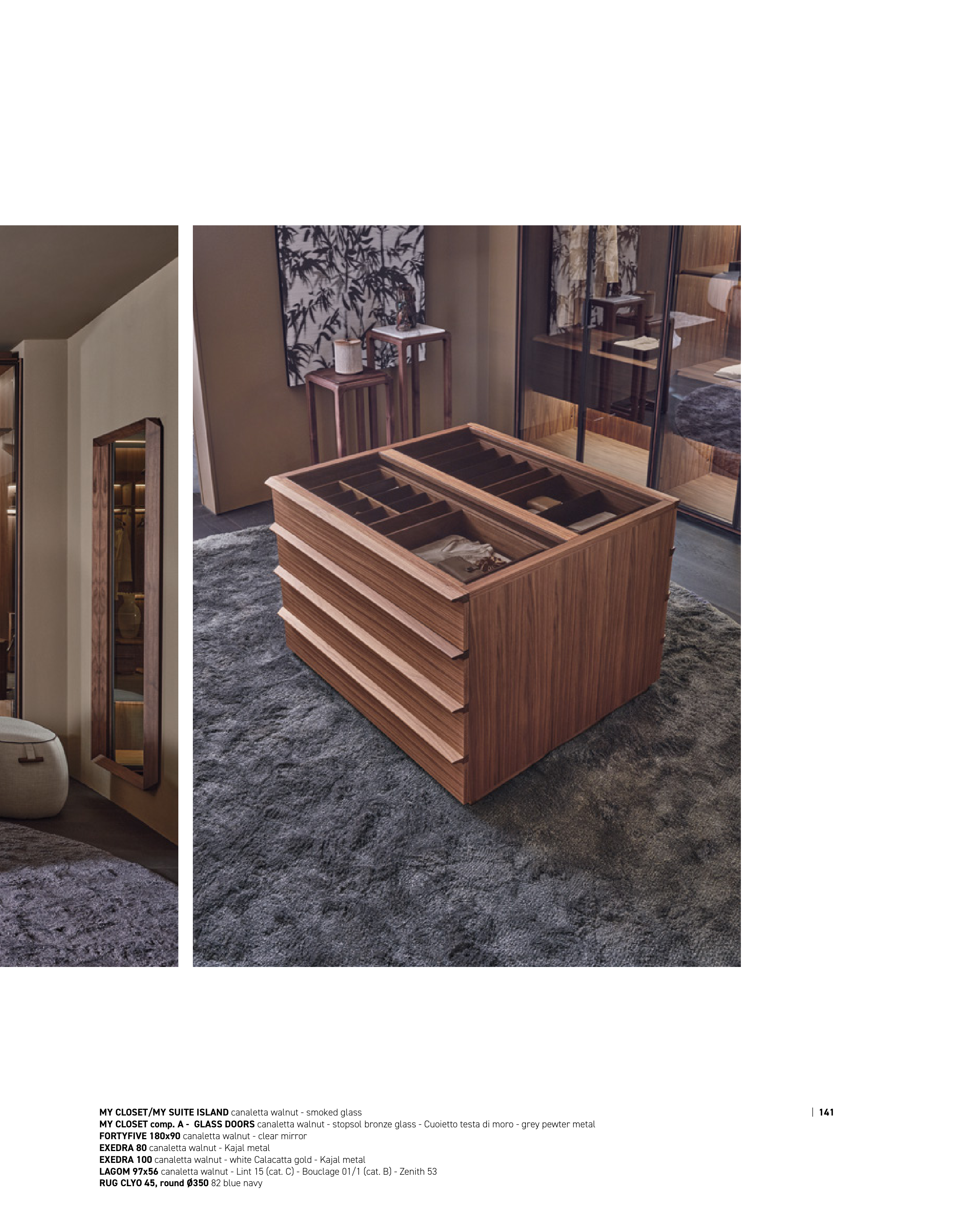 MY CLOSET/MY SUITE ISLAND canaletta walnut - smoked glass