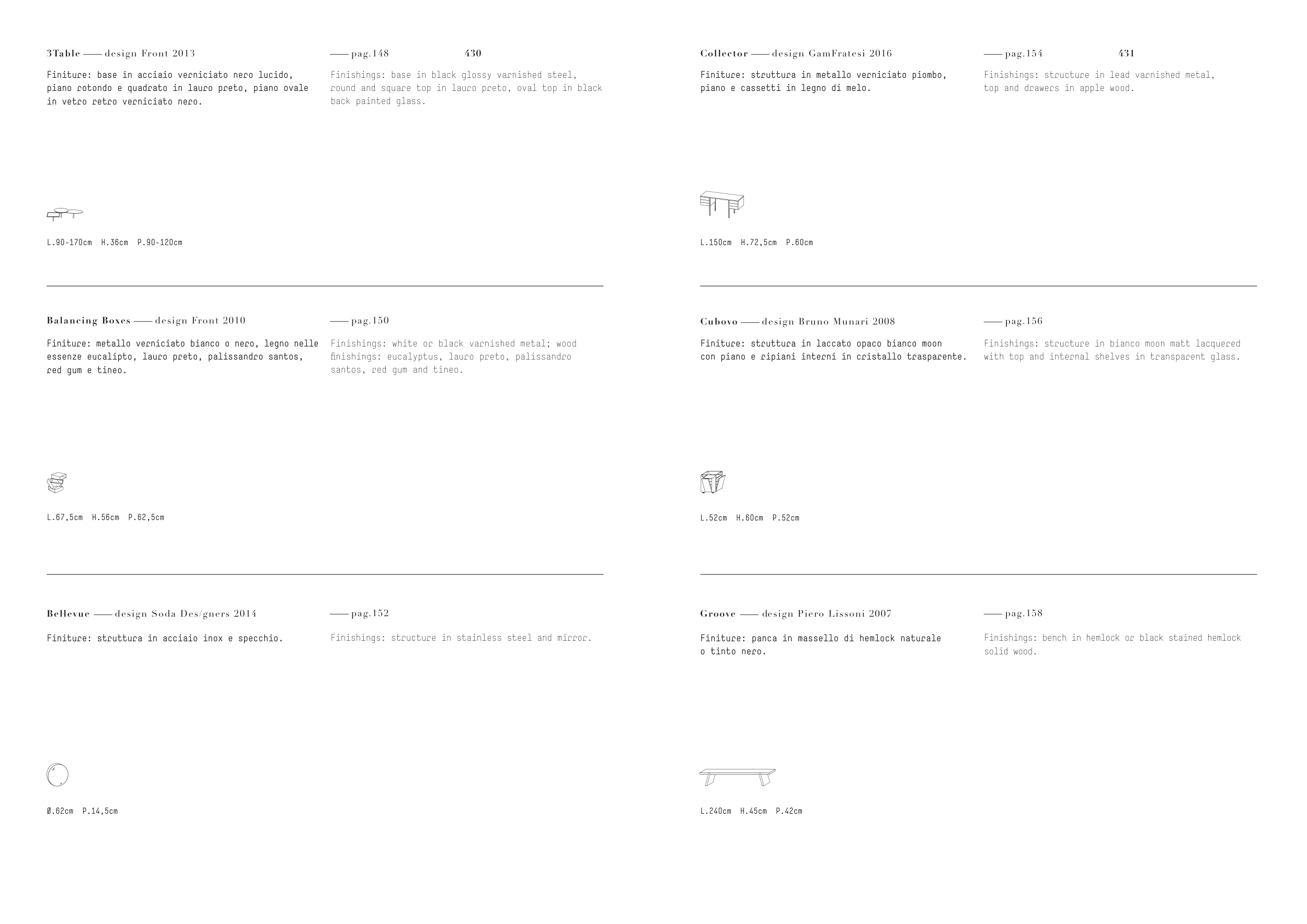 Finishings: white or black varnished metal; wood