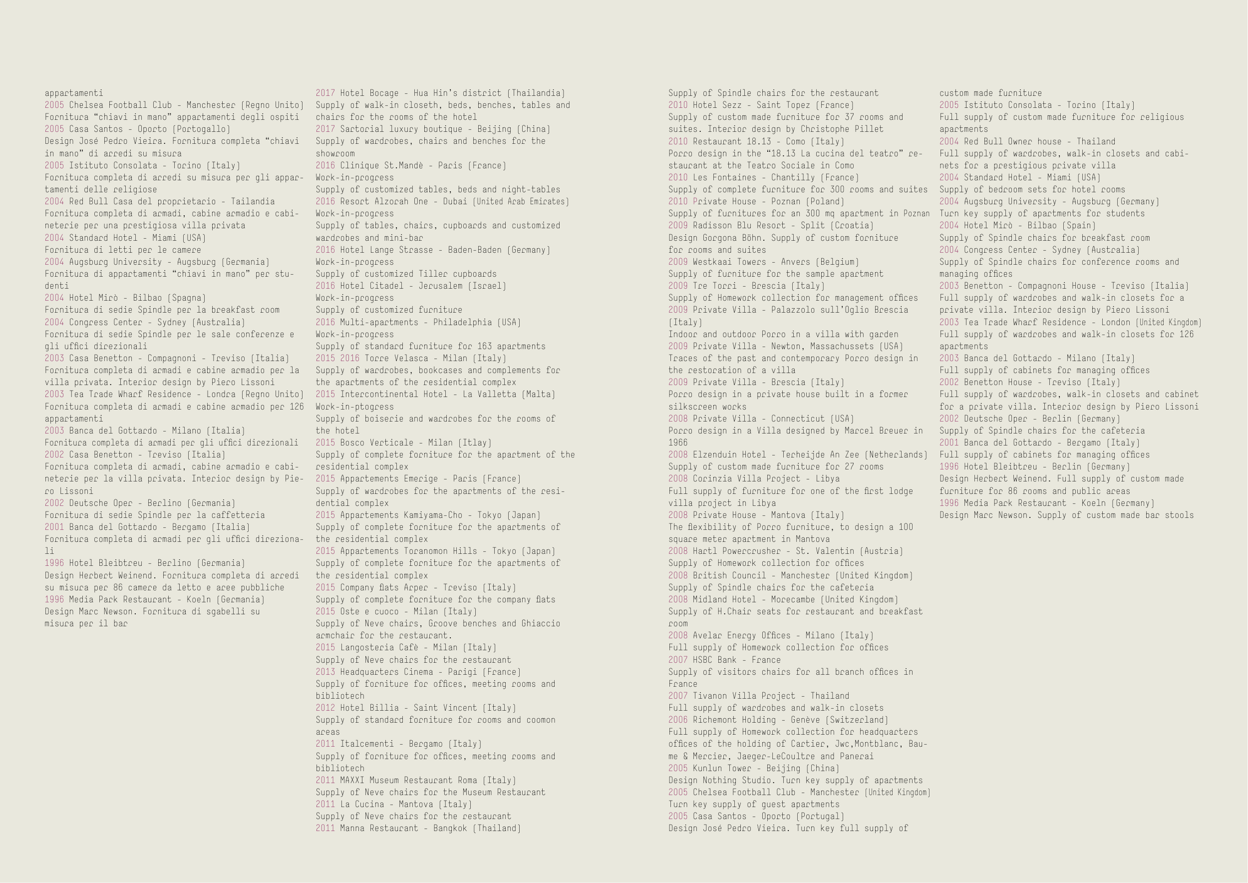 Supply of complete furniture for 300 rooms and suites