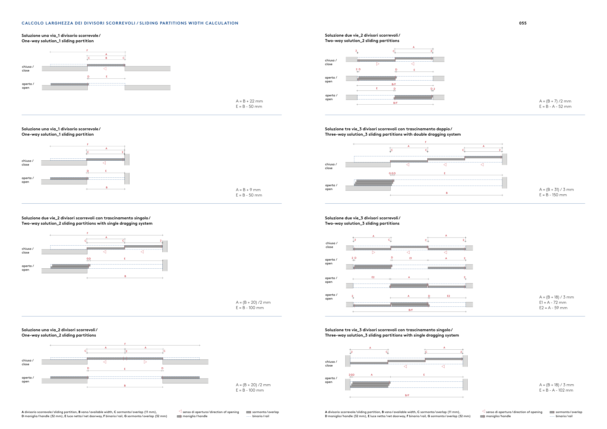 CALCOLO LARGHEZZA DEI DIVISORI SCORREVOLI / SLIDING PARTITIONS WIDTH CALCULATION