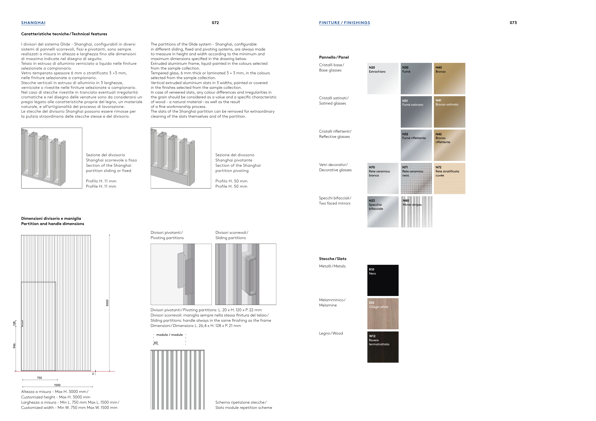 Divisori pivotanti / Pivoting partitions: L. 20 x H. 120 x P. 22 mm