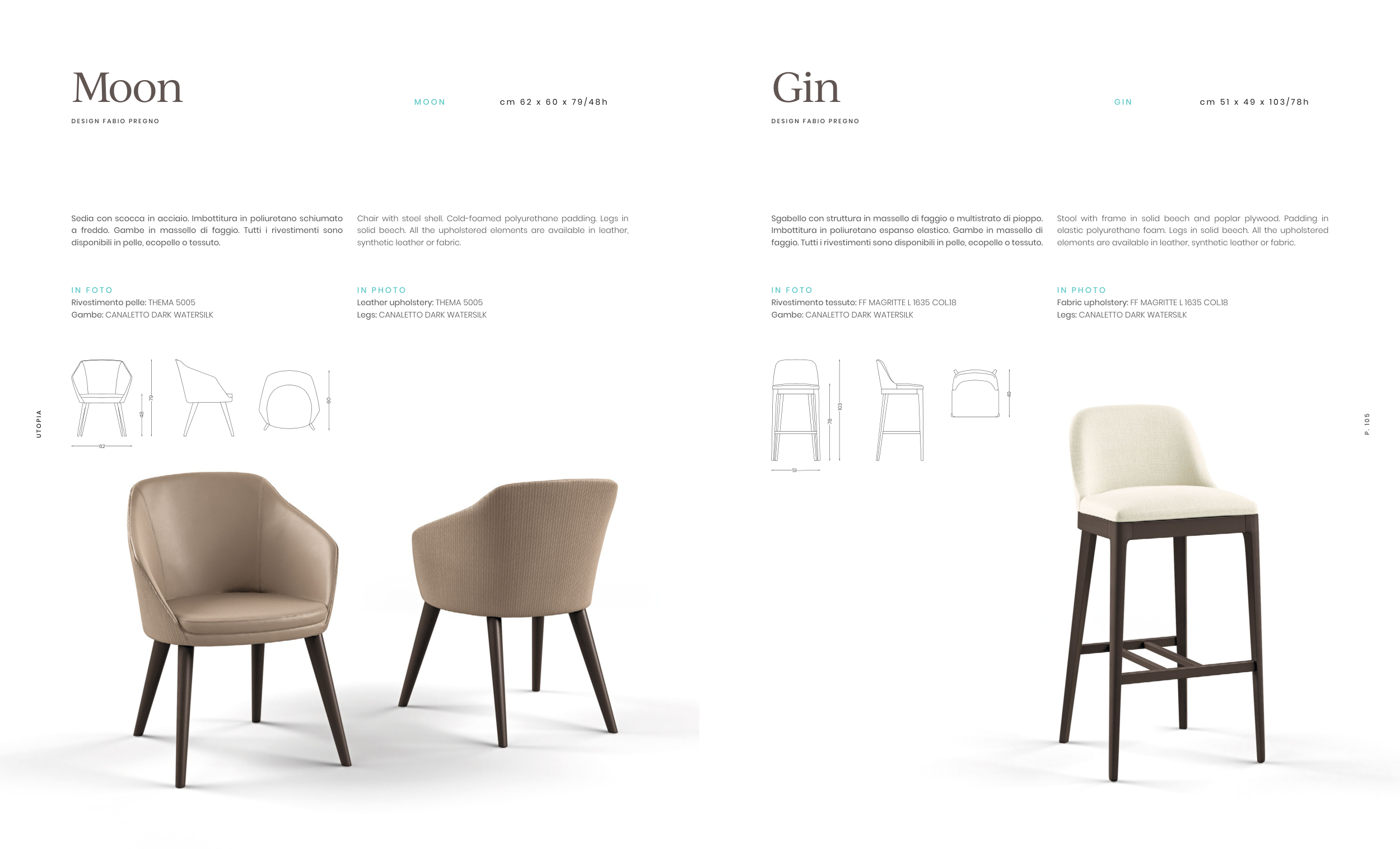 faggio. Tutti i rivestimenti sono disponibili in pelle, ecopelle o tessuto.