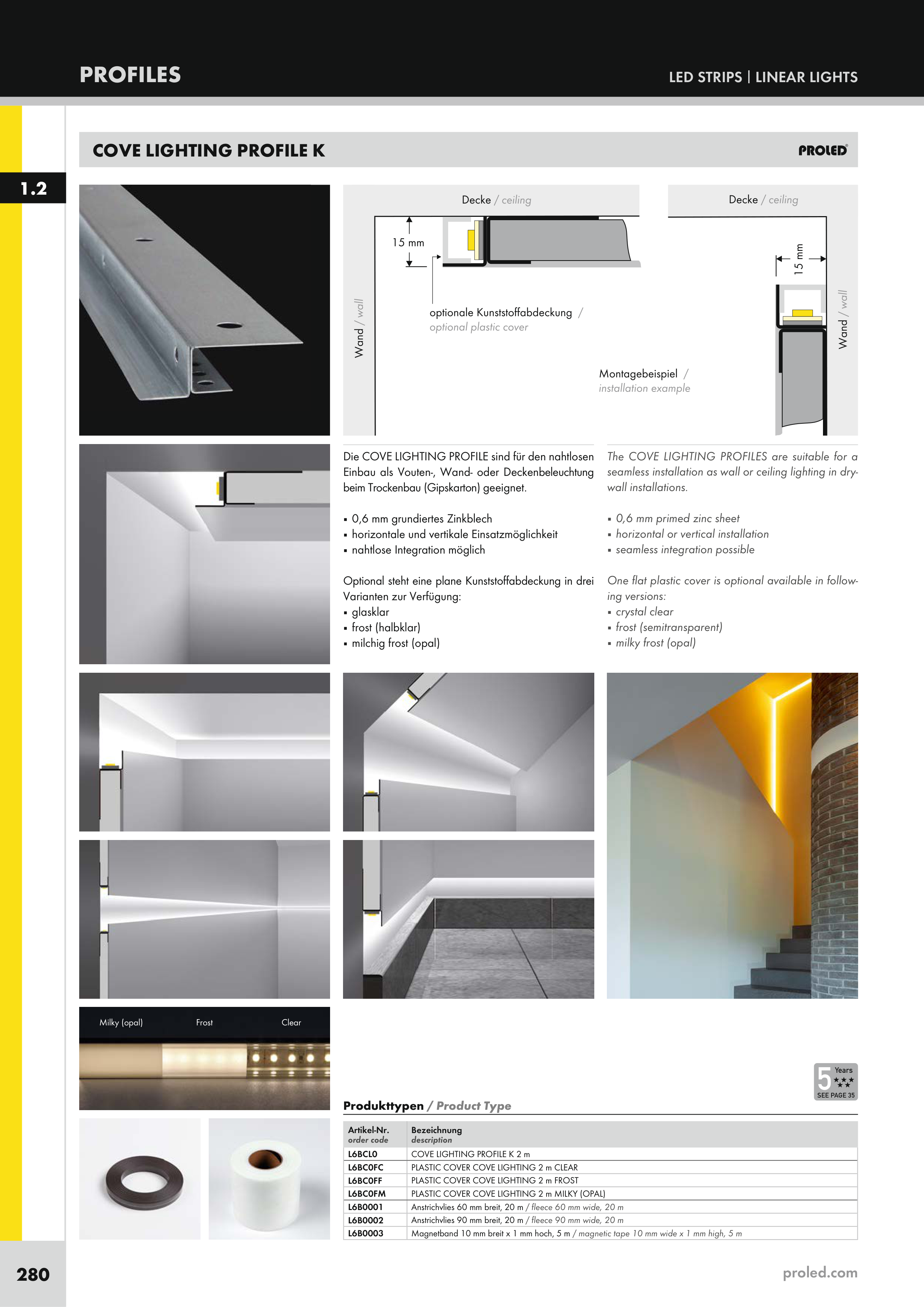 The COVE LIGHTING PROFILES are suitable for a