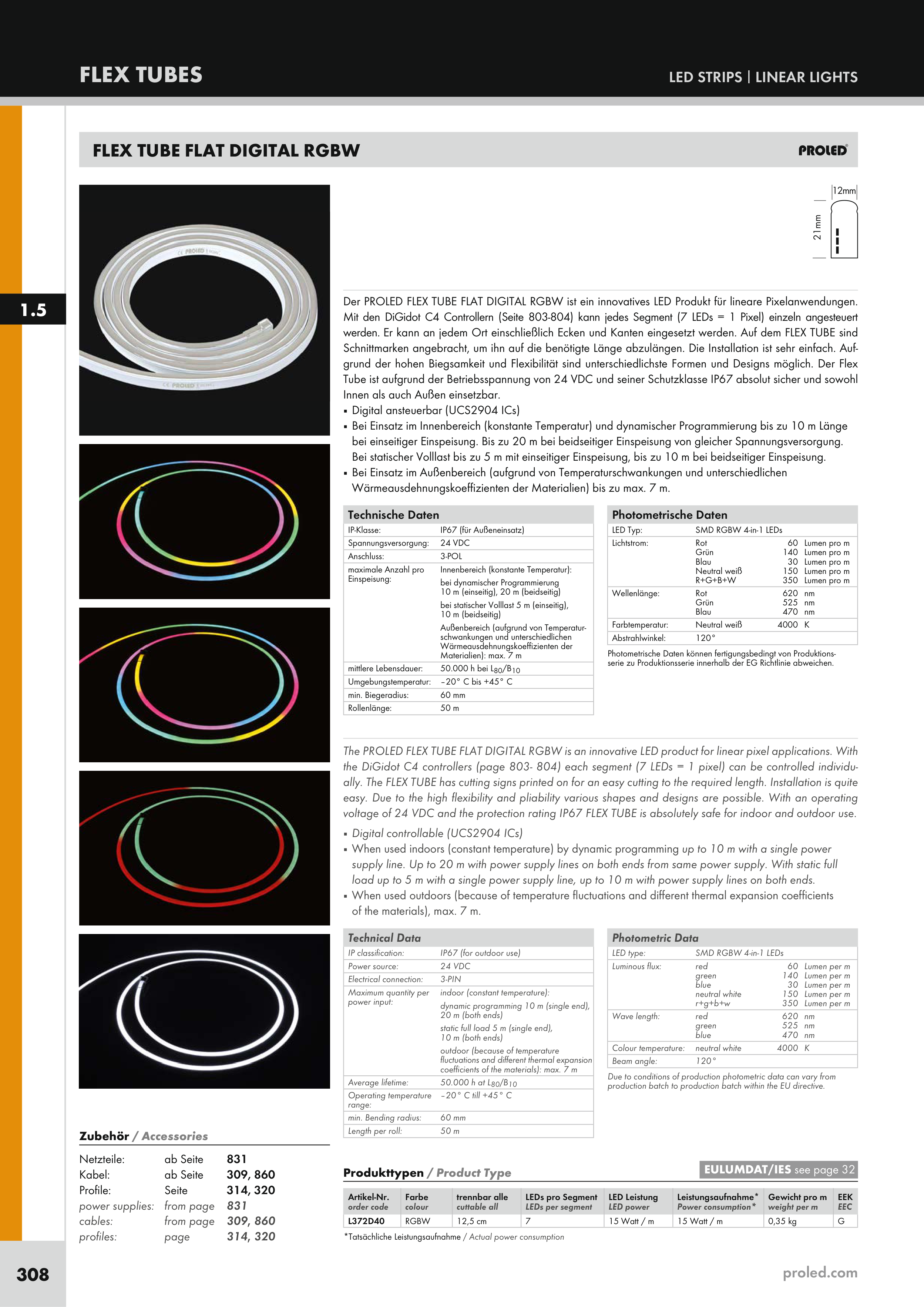 voltage of 24 VDC and the protection rating IP67 FLEX TUBE is absolutely safe for indoor and outdoor use.