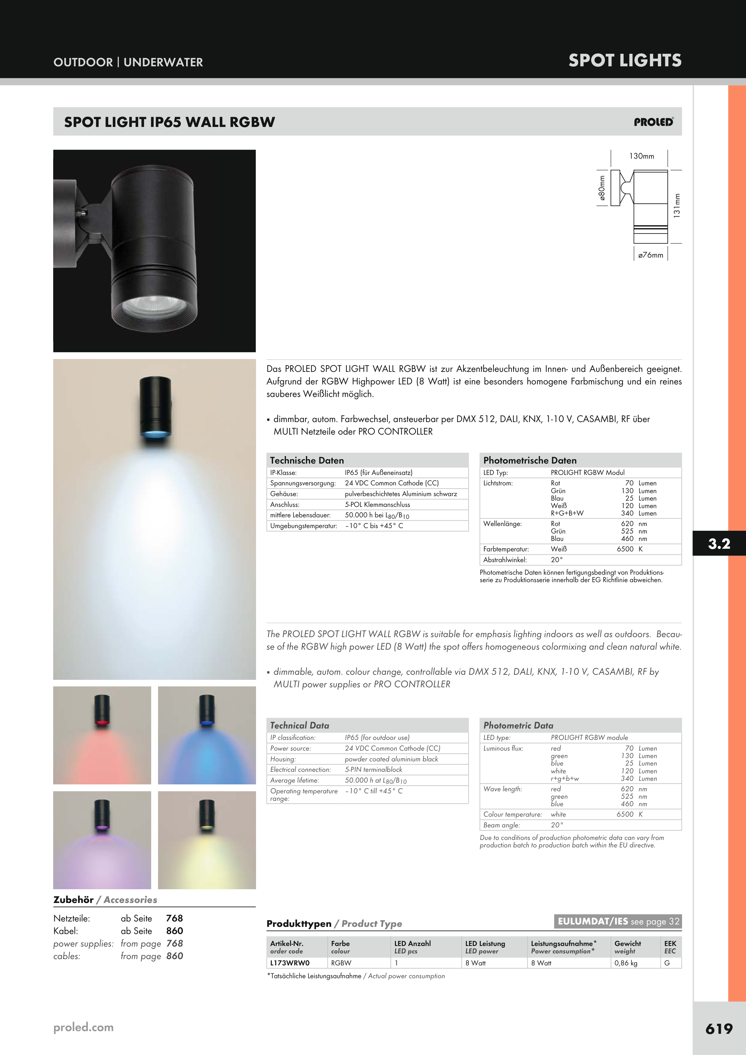se of the RGBW high power LED (8 Watt) the spot offers homogeneous colormixing and clean natural white.