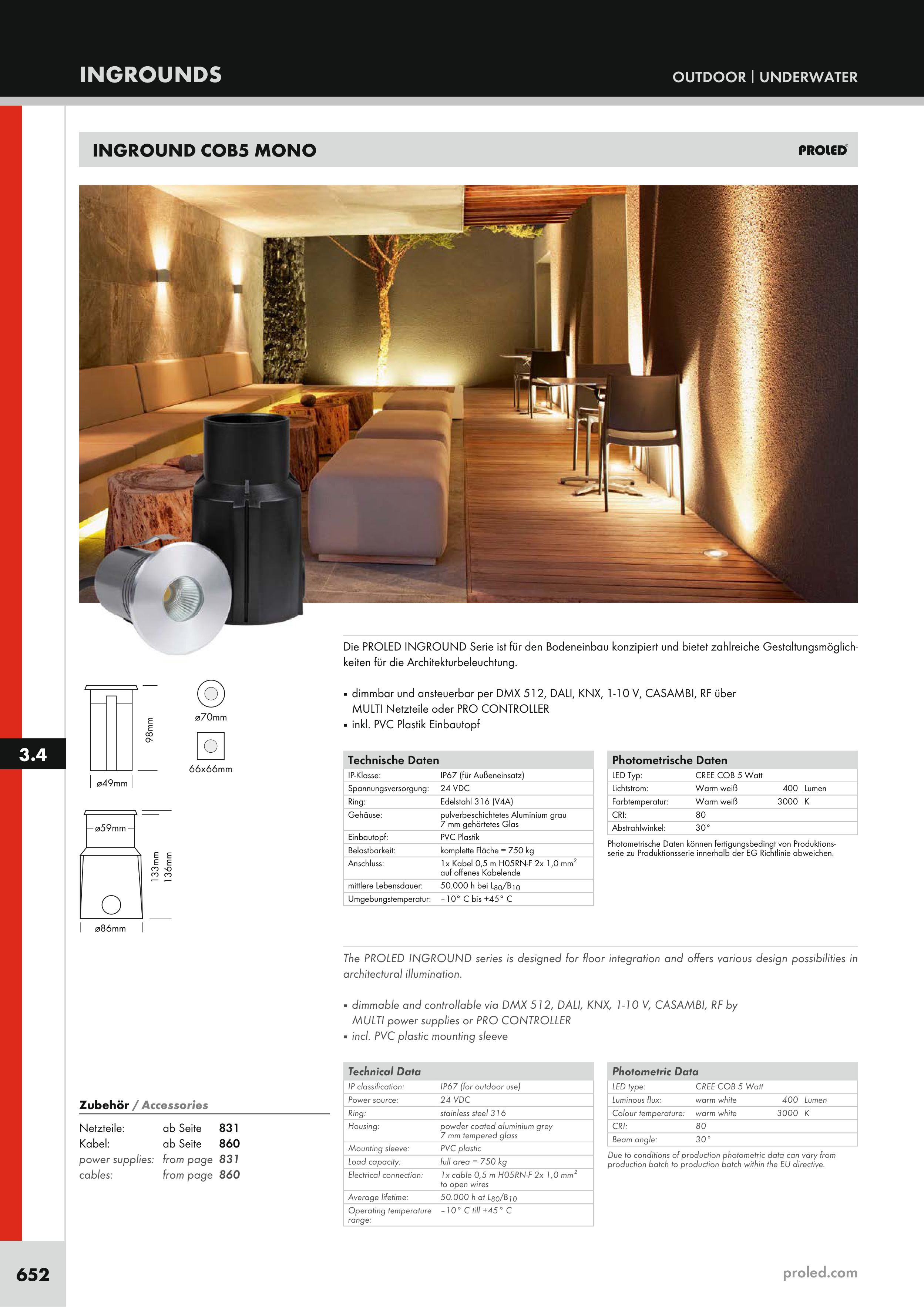 ■ dimmable and controllable via DMX 512, DALI, KNX, 1-10 V, CASAMBI, RF by