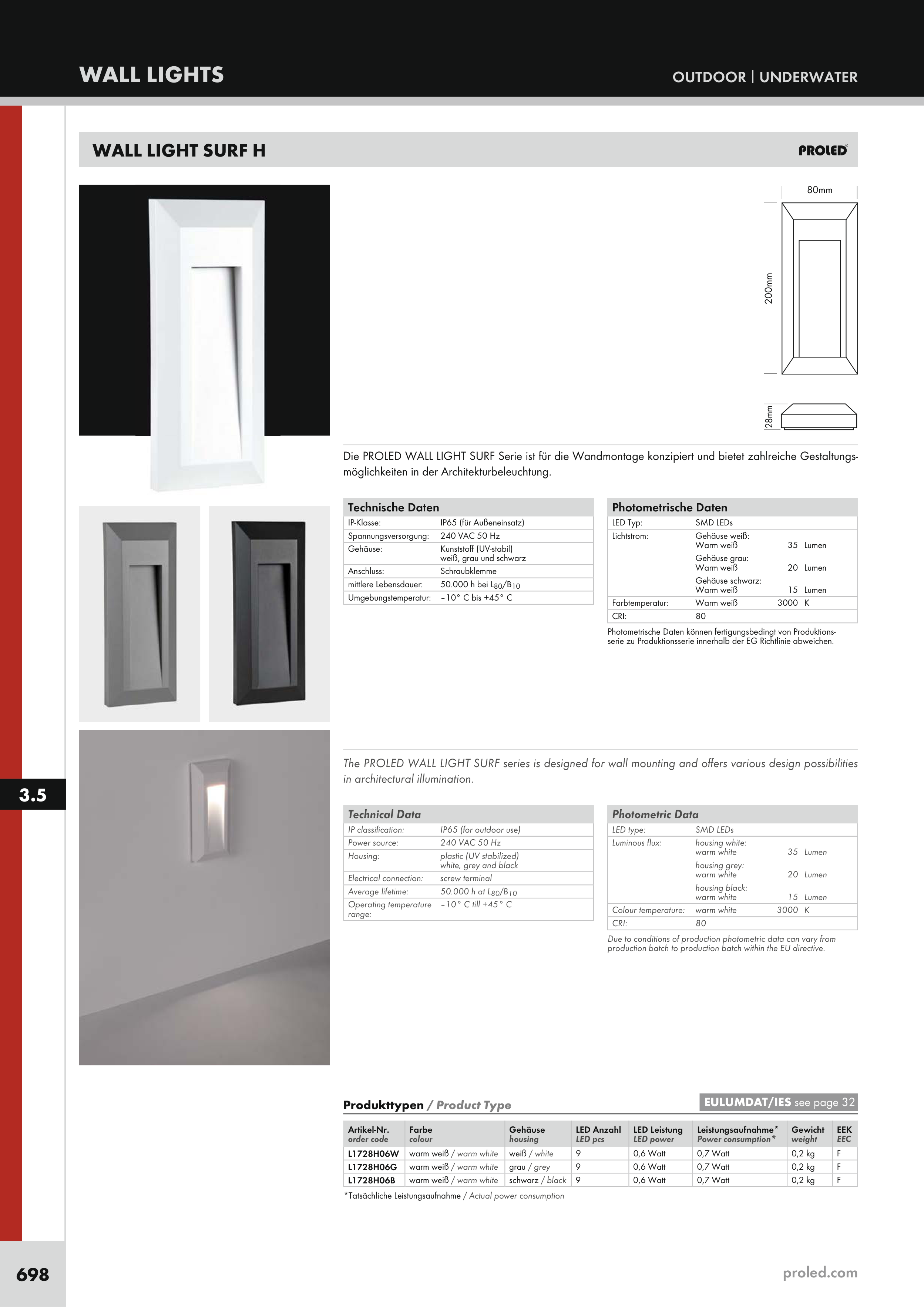 Die PROLED WALL LIGHT SURF Serie ist für die Wandmontage konzipiert und bietet zahlreiche Gestaltungs-