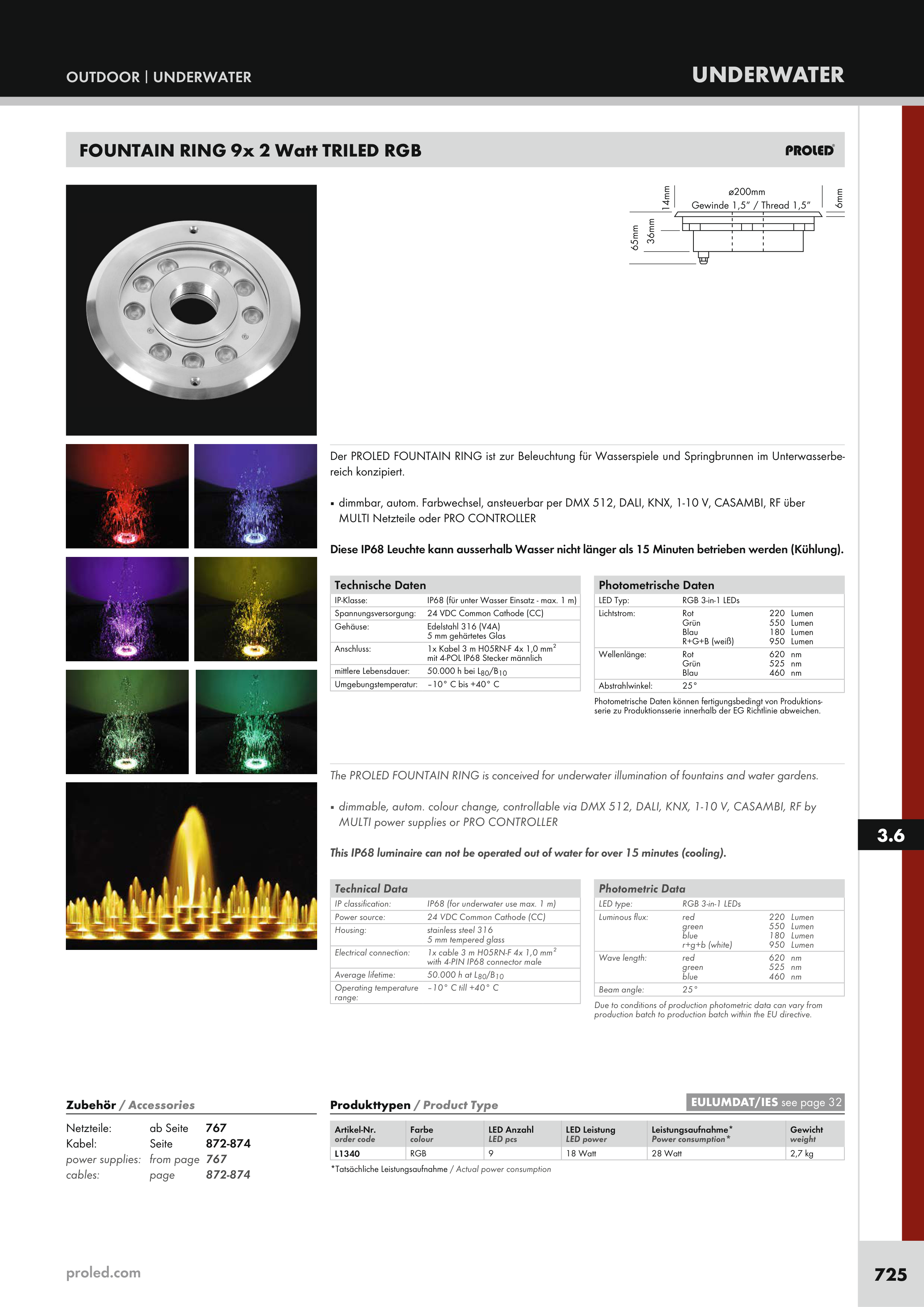 The PROLED FOUNTAIN RING is conceived for underwater illumination of fountains and water gardens.