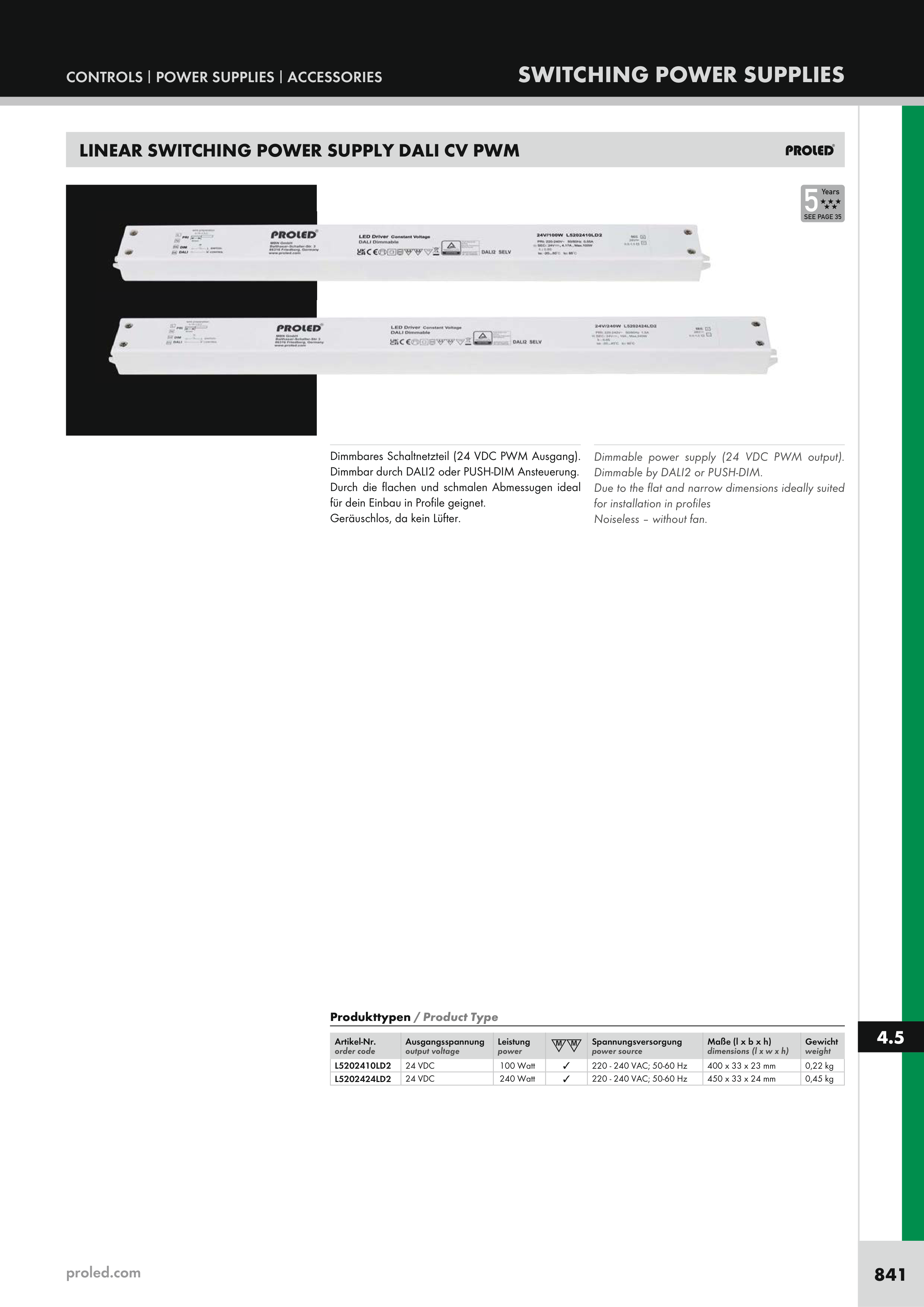 LINEAR SWITCHING POWER SUPPLY DALI CV PWM