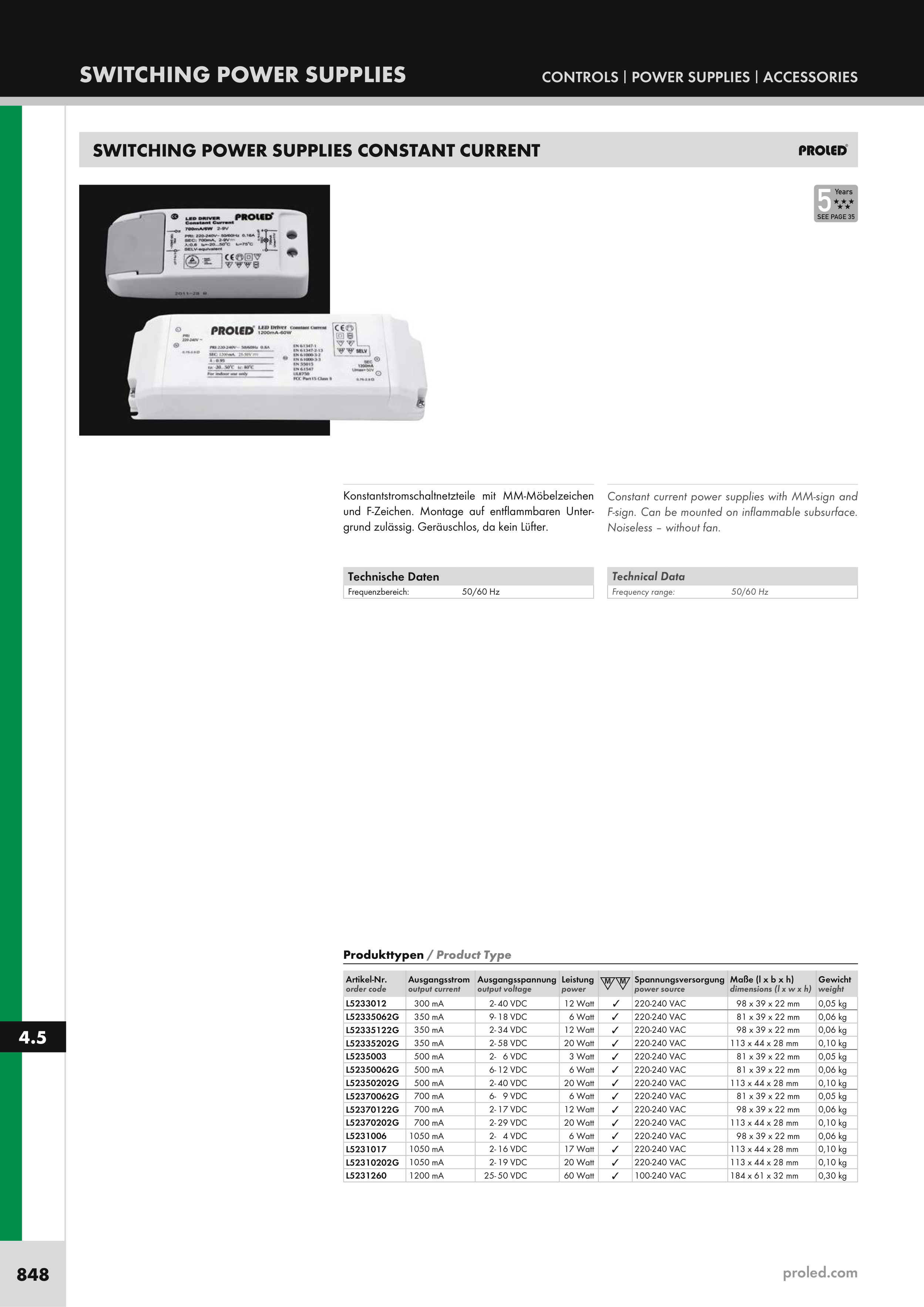 Constant current power supplies with MM-sign and