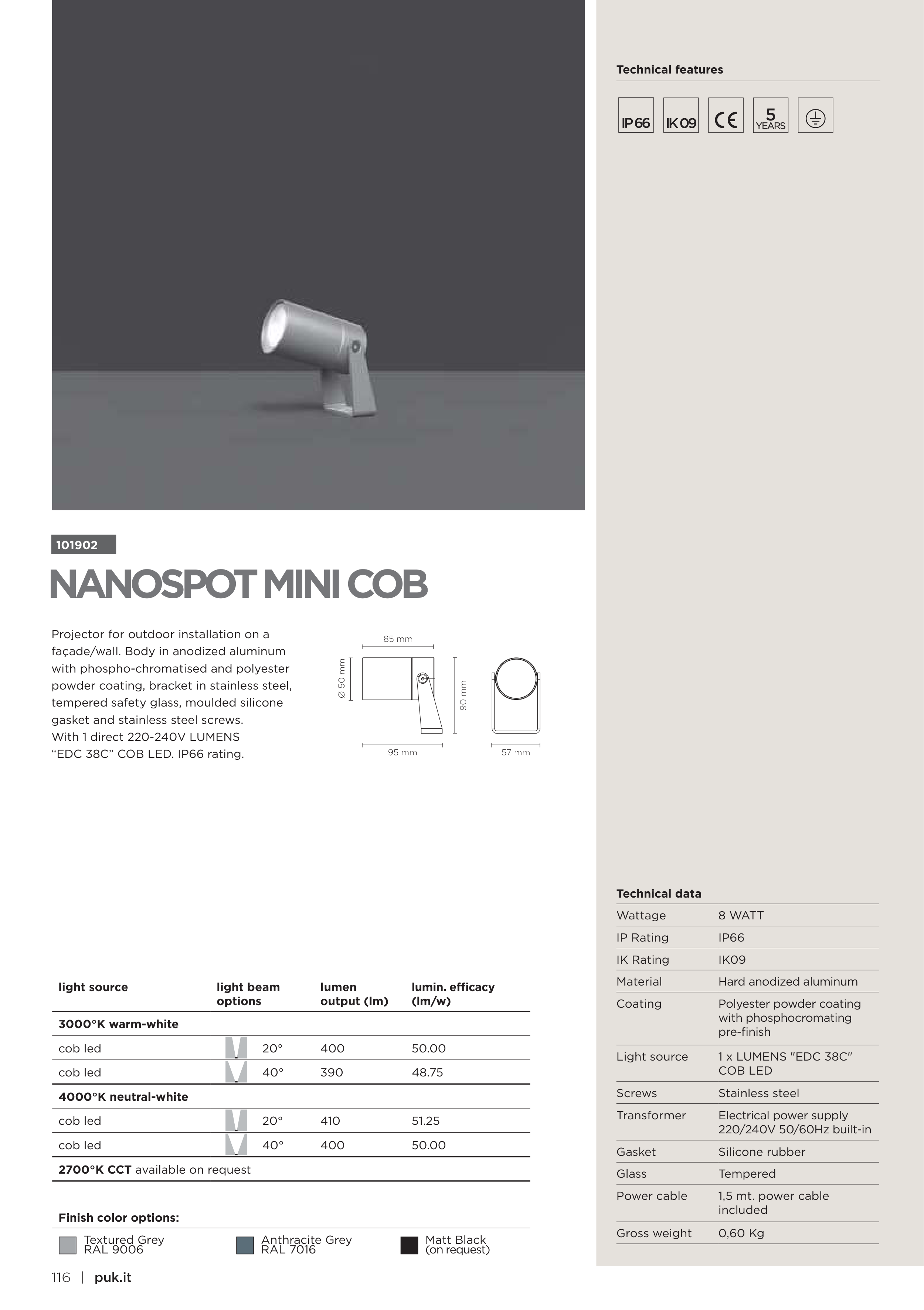 façade/wall. Body in anodized aluminum