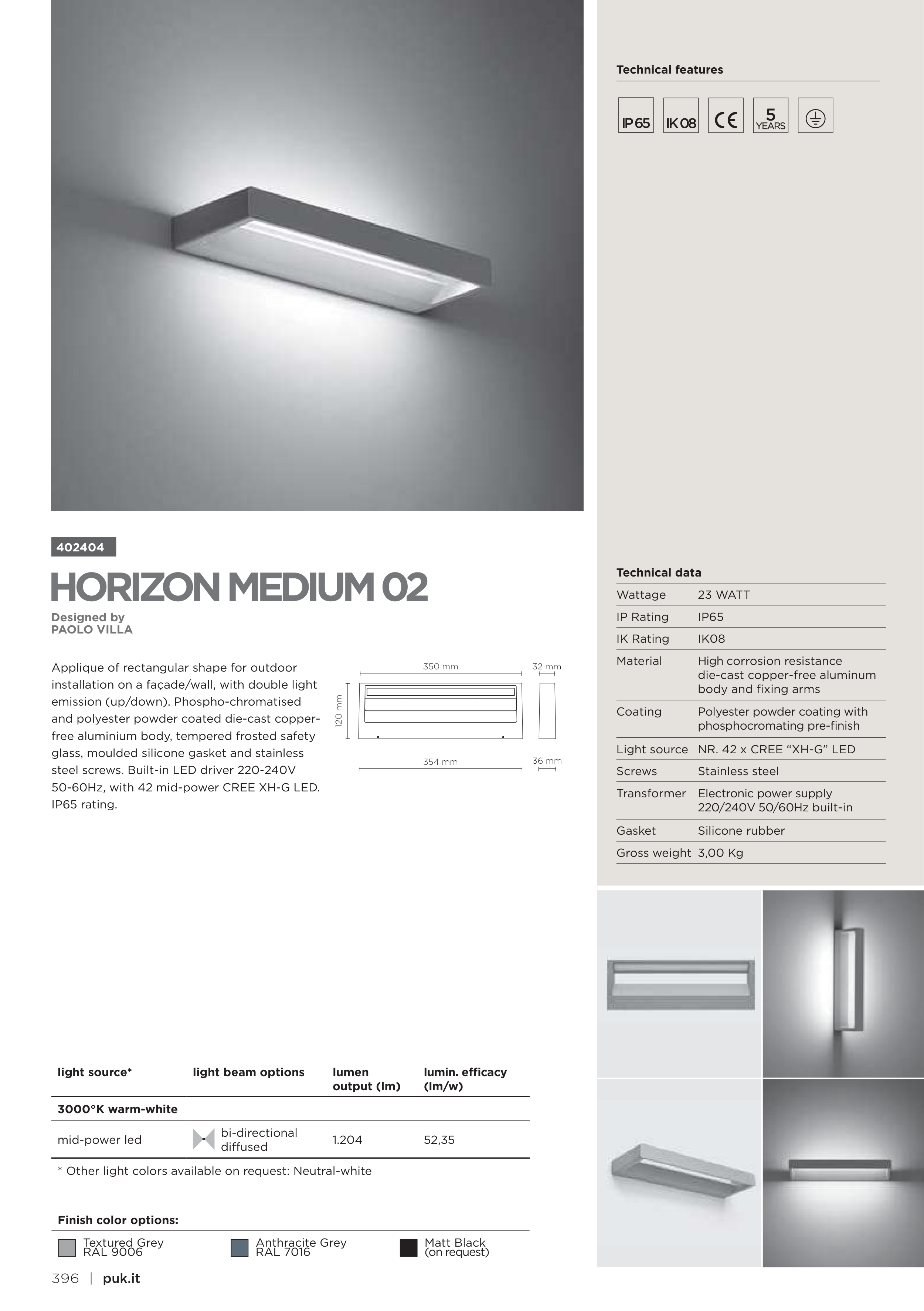 * Other light colors available on request: Neutral-white