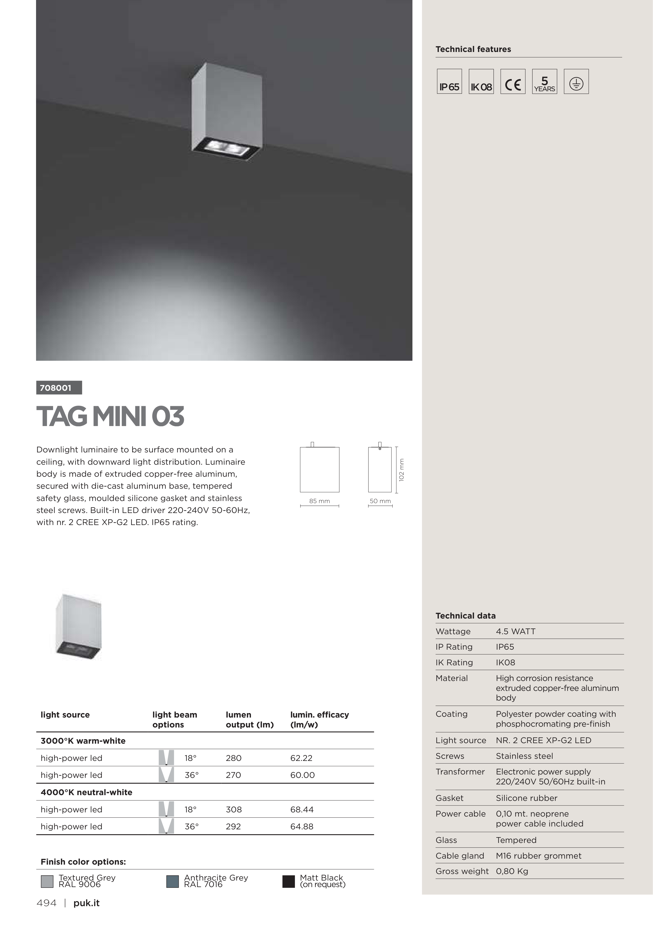 with nr. 2 CREE XP-G2 LED. IP65 rating.