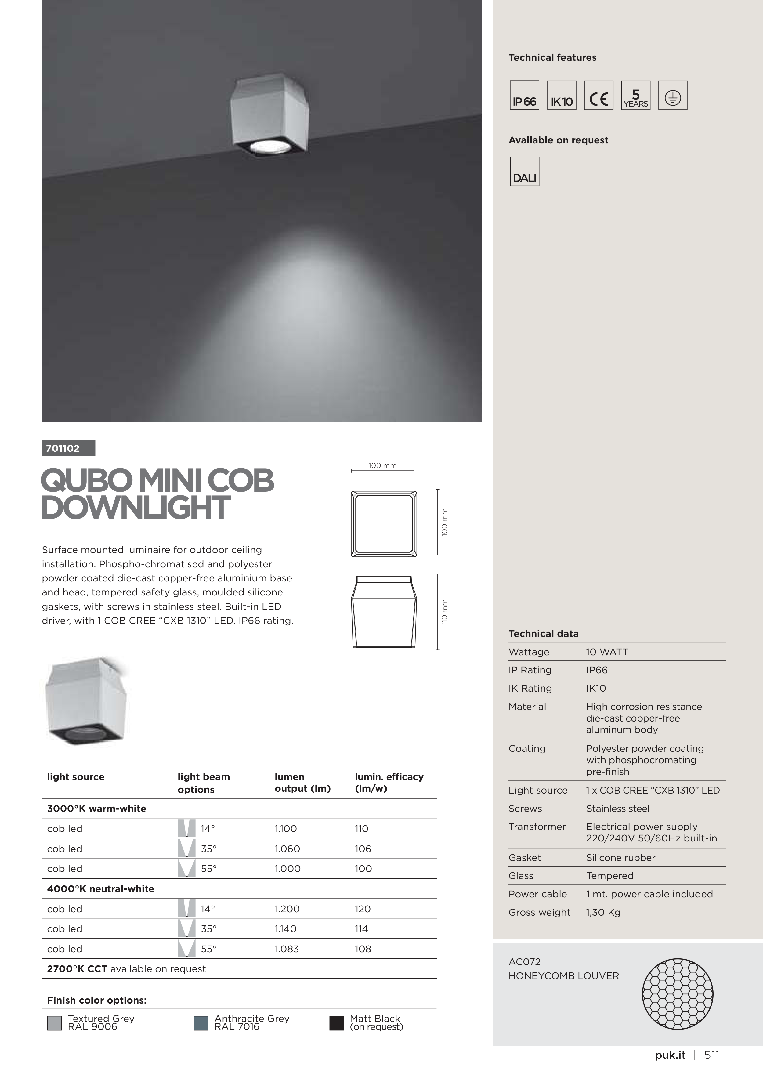 driver, with 1 COB CREE “CXB 1310” LED. IP66 rating.