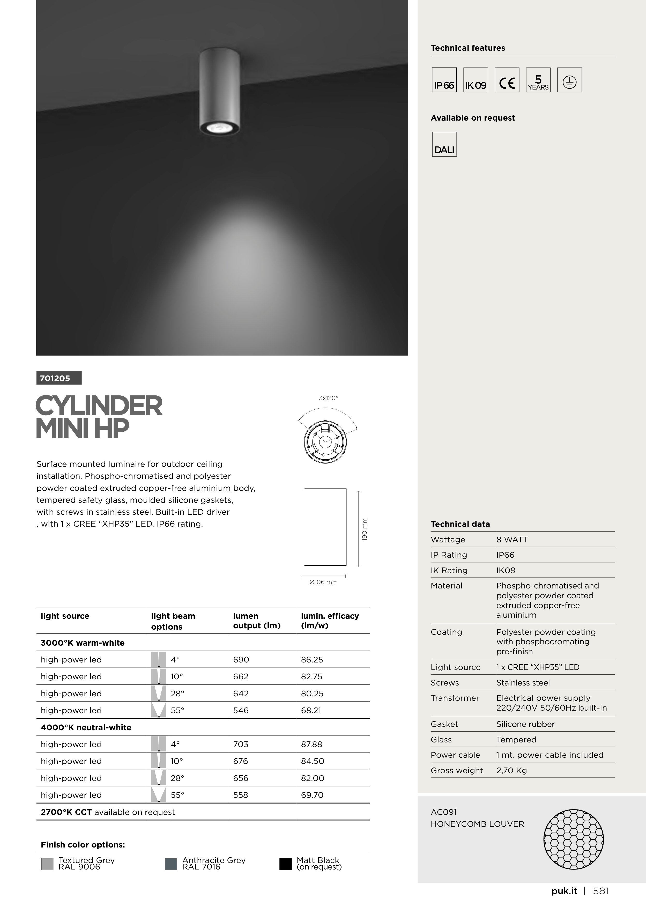 , with 1 x CREE “XHP35” LED. IP66 rating.