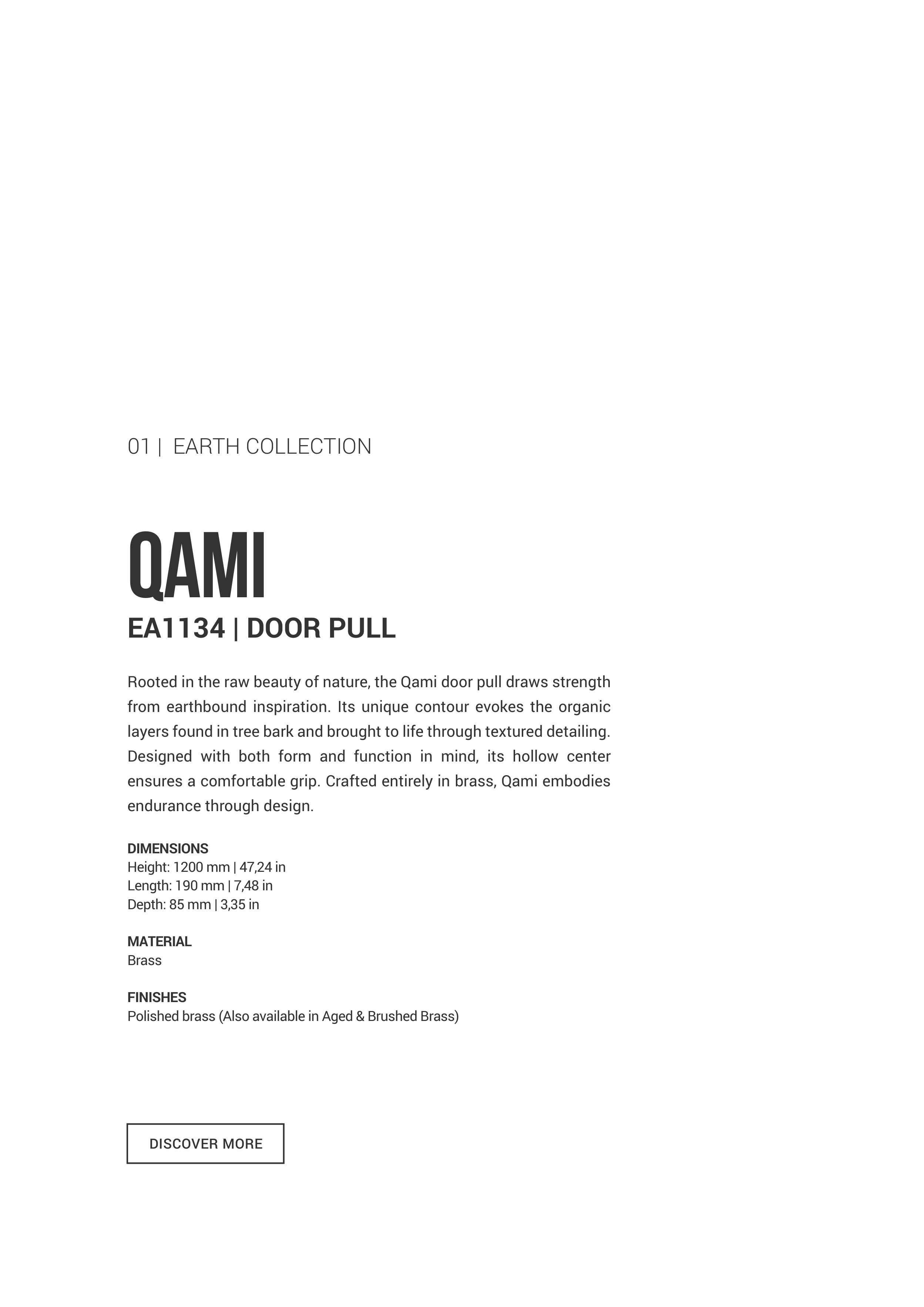 ensures a comfortable grip. Crafted entirely in brass, Qami embodies