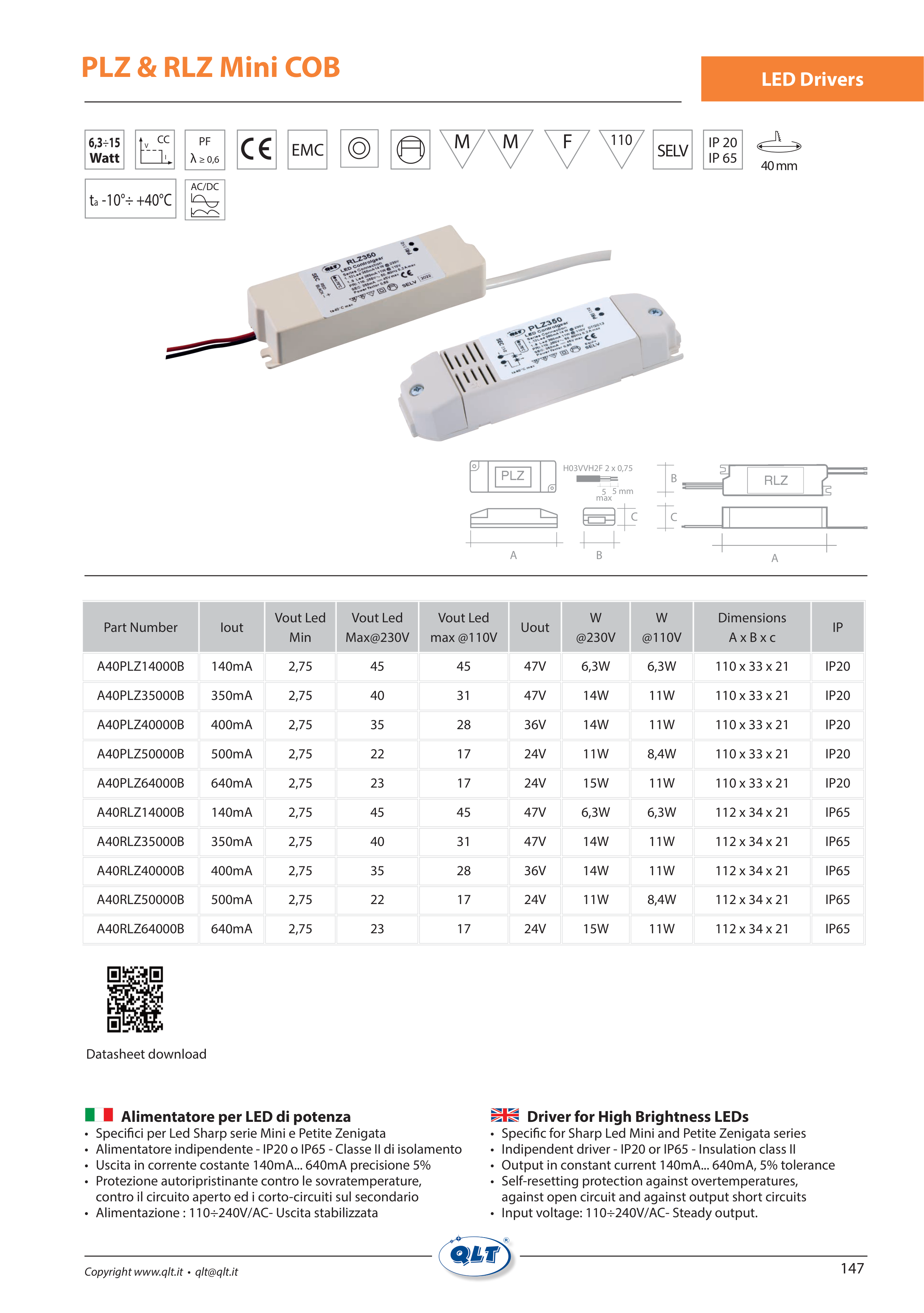 • Indipendent driver - IP20 or IP65 - Insulation class II