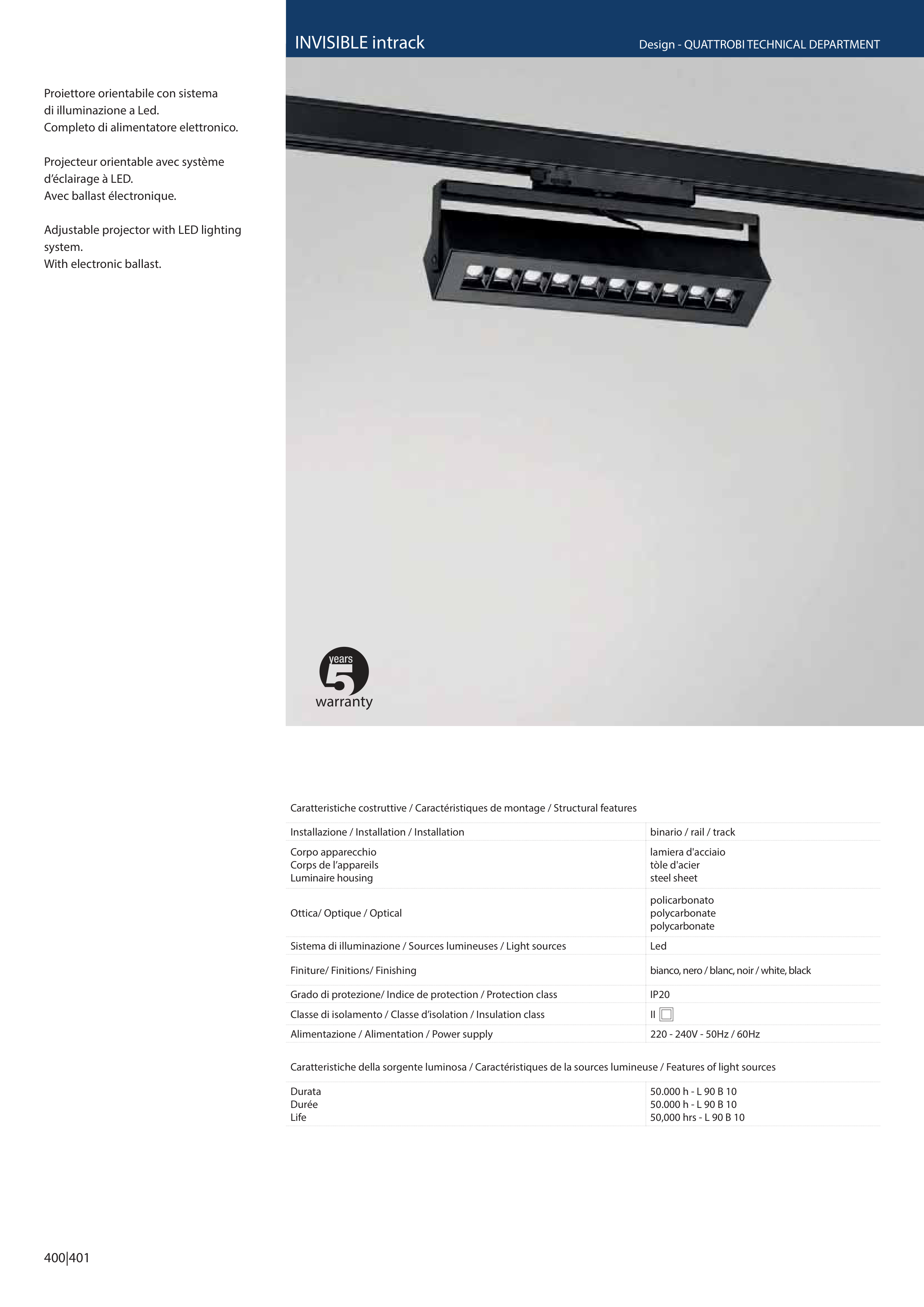 Caratteristiche della sorgente luminosa / Caractéristiques de la sources lumineuse / Features of light sources