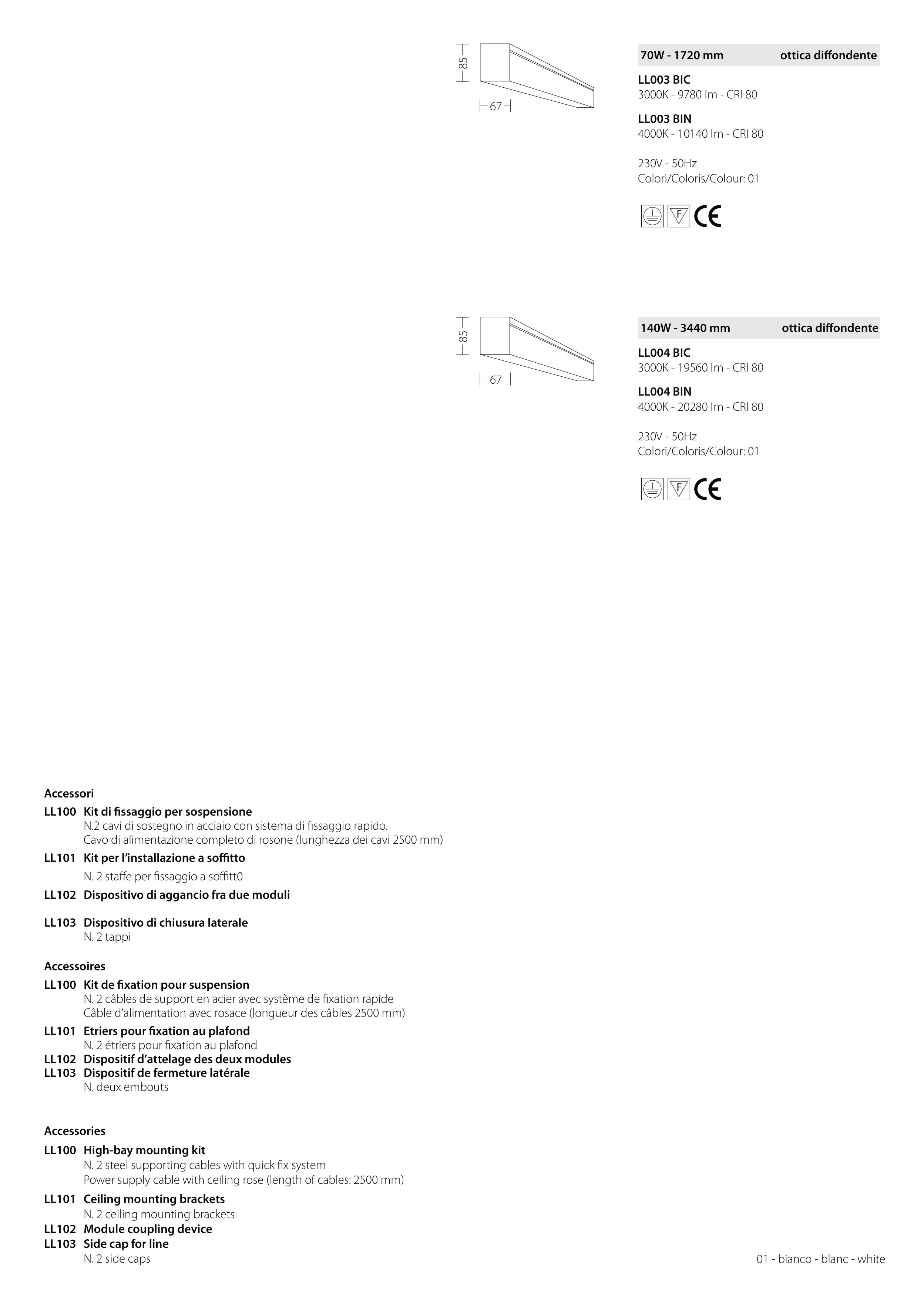 70W - 1720 mm ottica diffondente