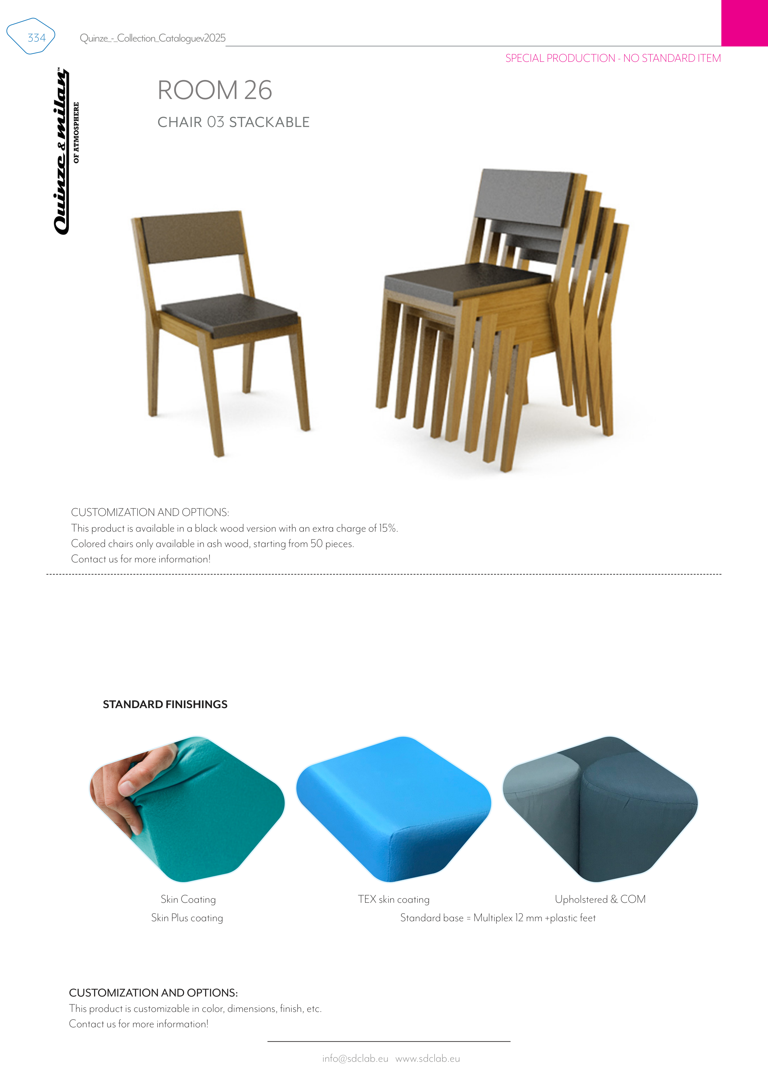 Colored chairs only available in ash wood, starting from 50 pieces.