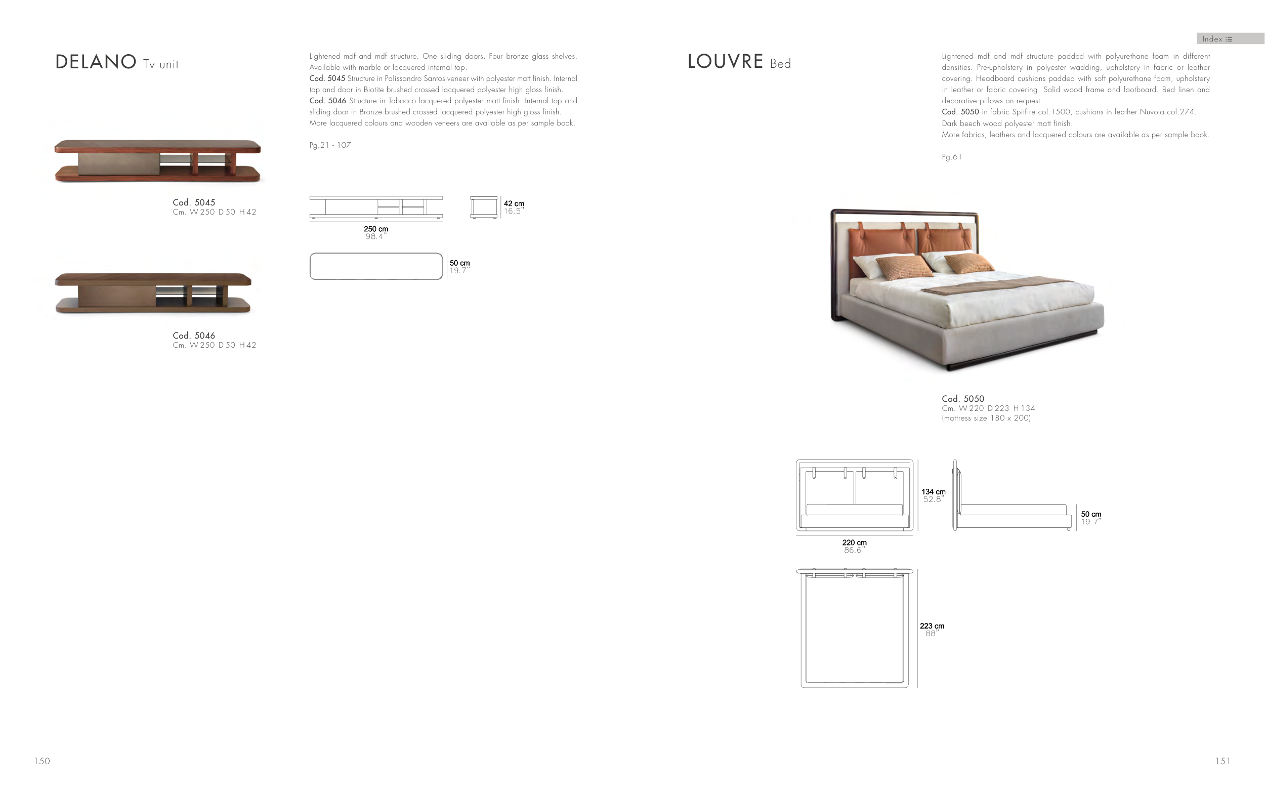 More fabrics, leathers and lacquered colours are available as per sample book.
