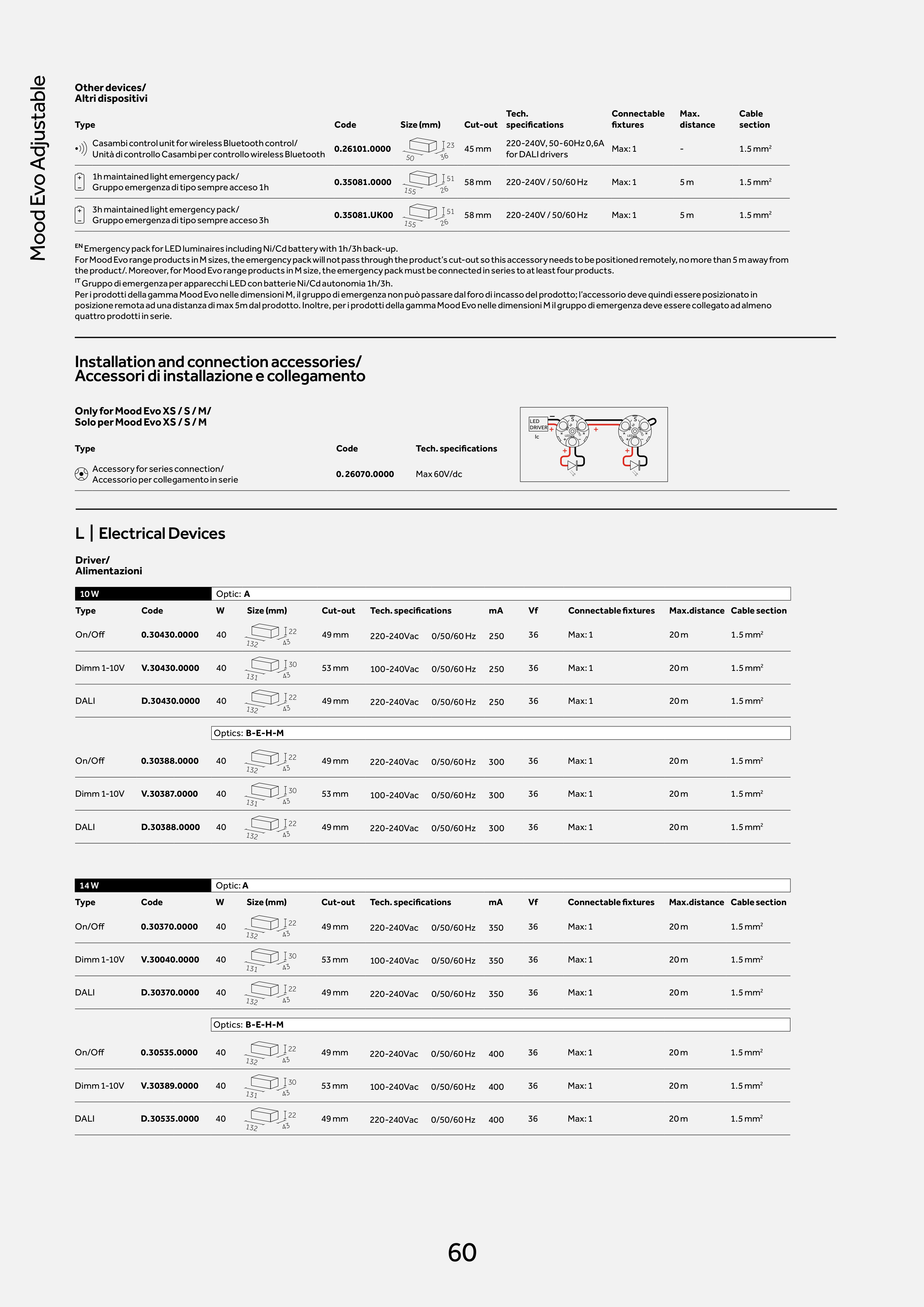 the product/. Moreover, for Mood Evo range products in M size, the emergency pack must be connected in series to at least four products.