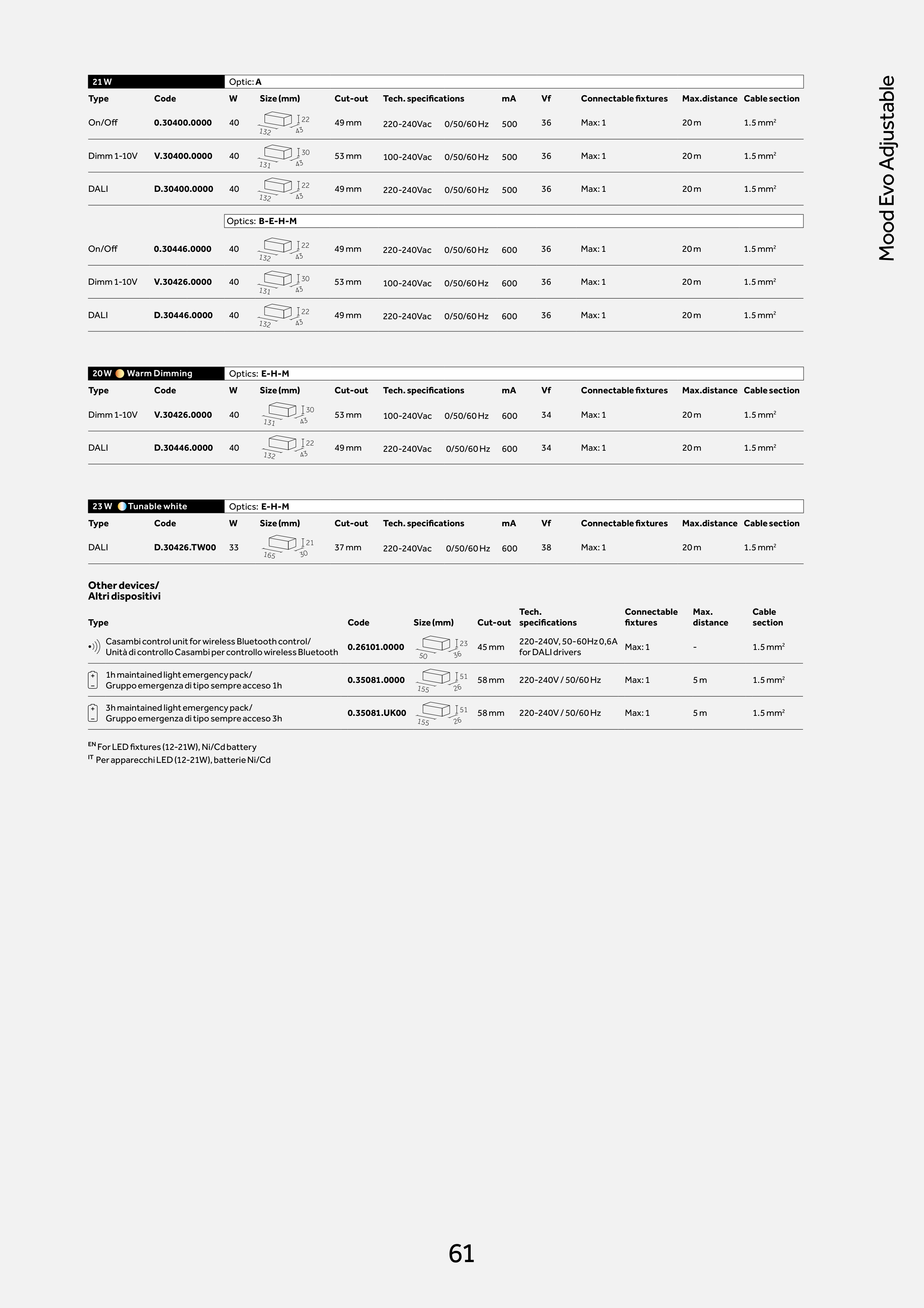 IT Per apparecchi LED (12-21W), batterie Ni/Cd