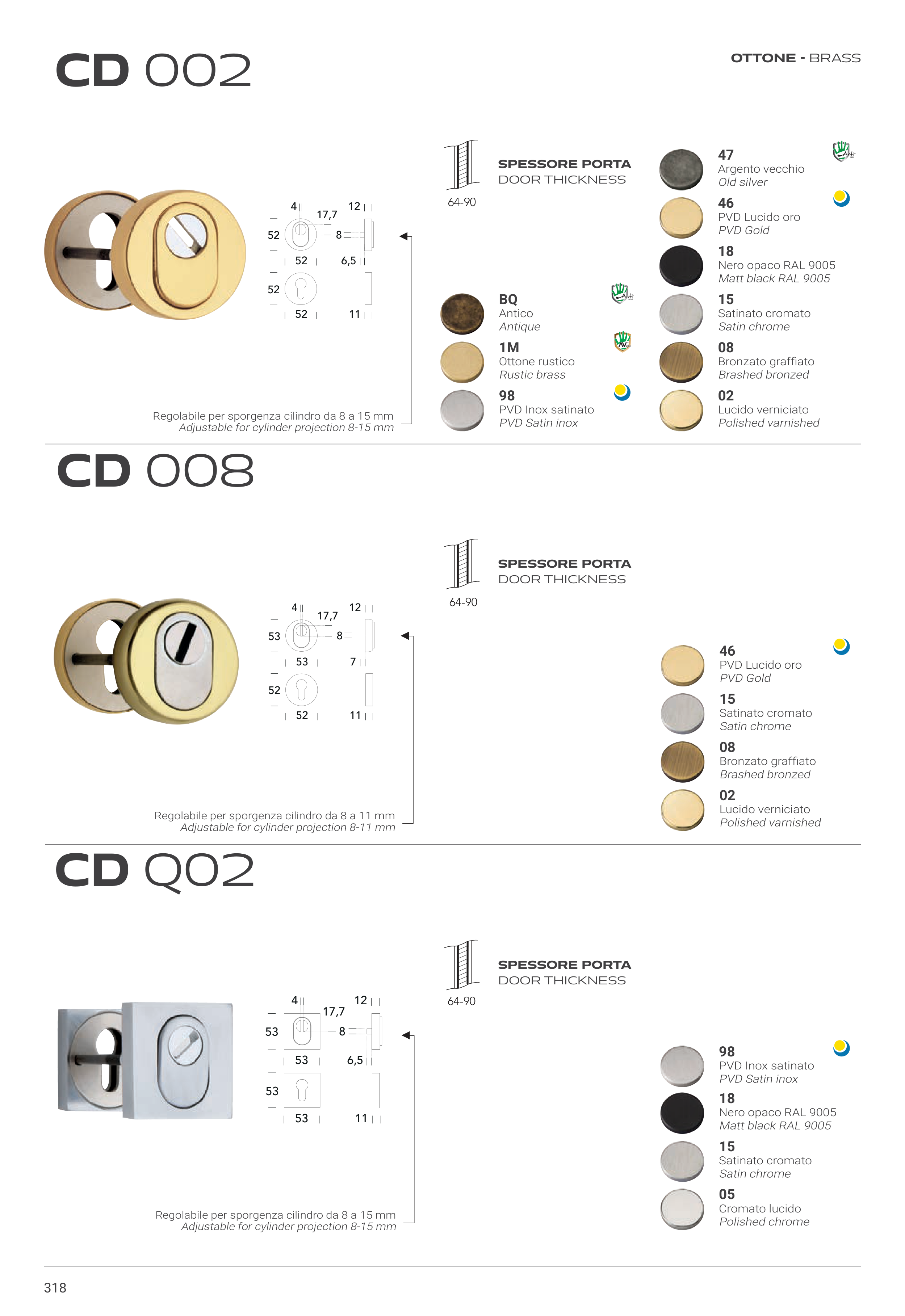 Regolabile per sporgenza cilindro da 8 a 15 mm