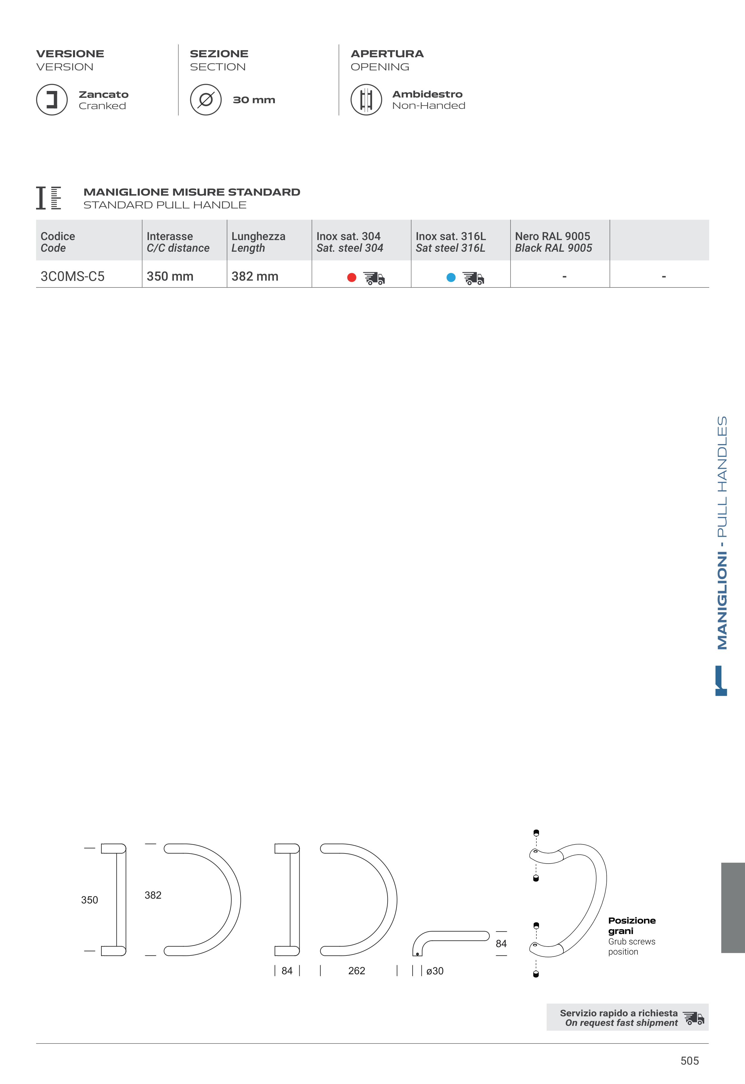 MANIGLIONE MISURE STANDARD