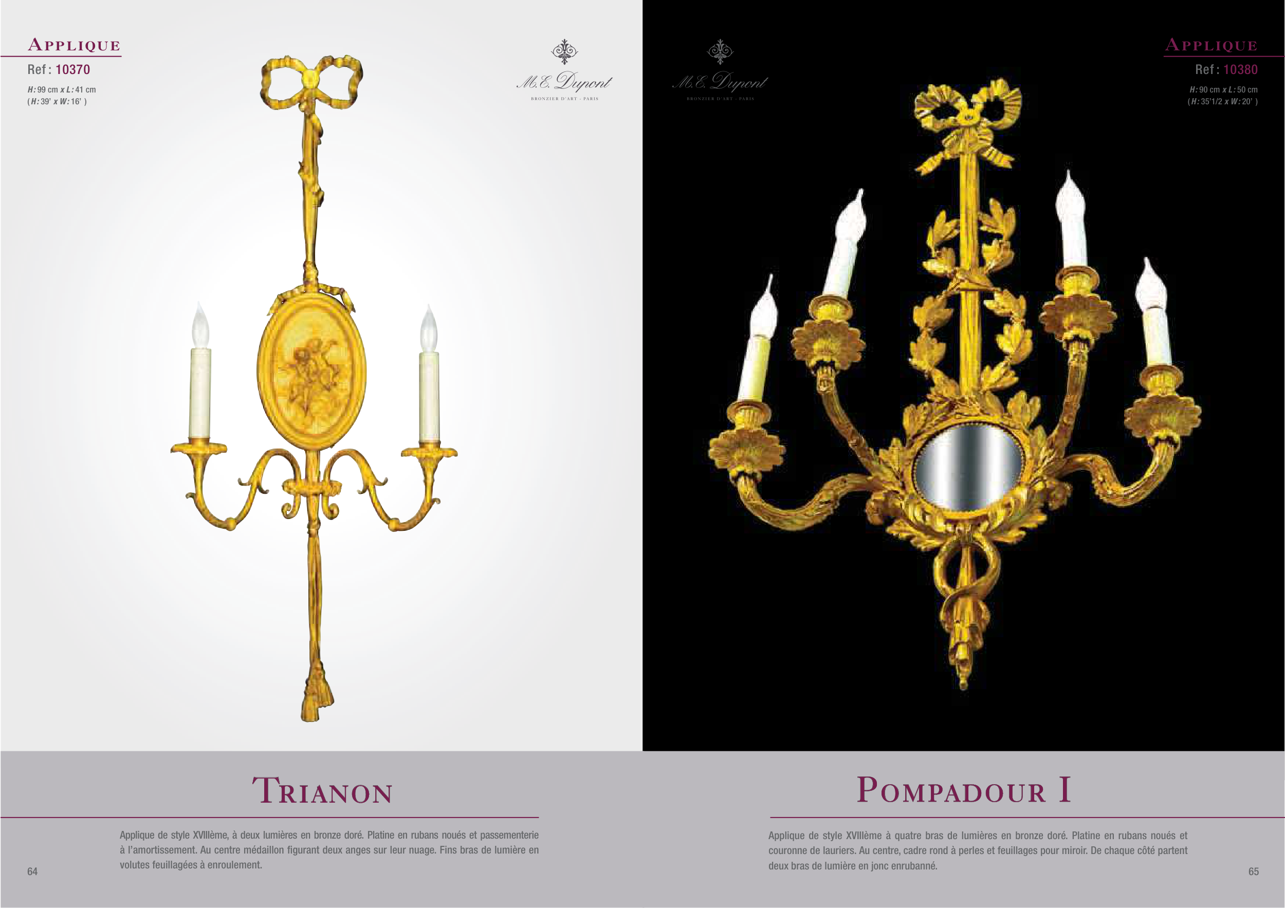 Applique de style XVIIIème, à deux lumières en bronze doré. Platine en rubans noués et passementerie