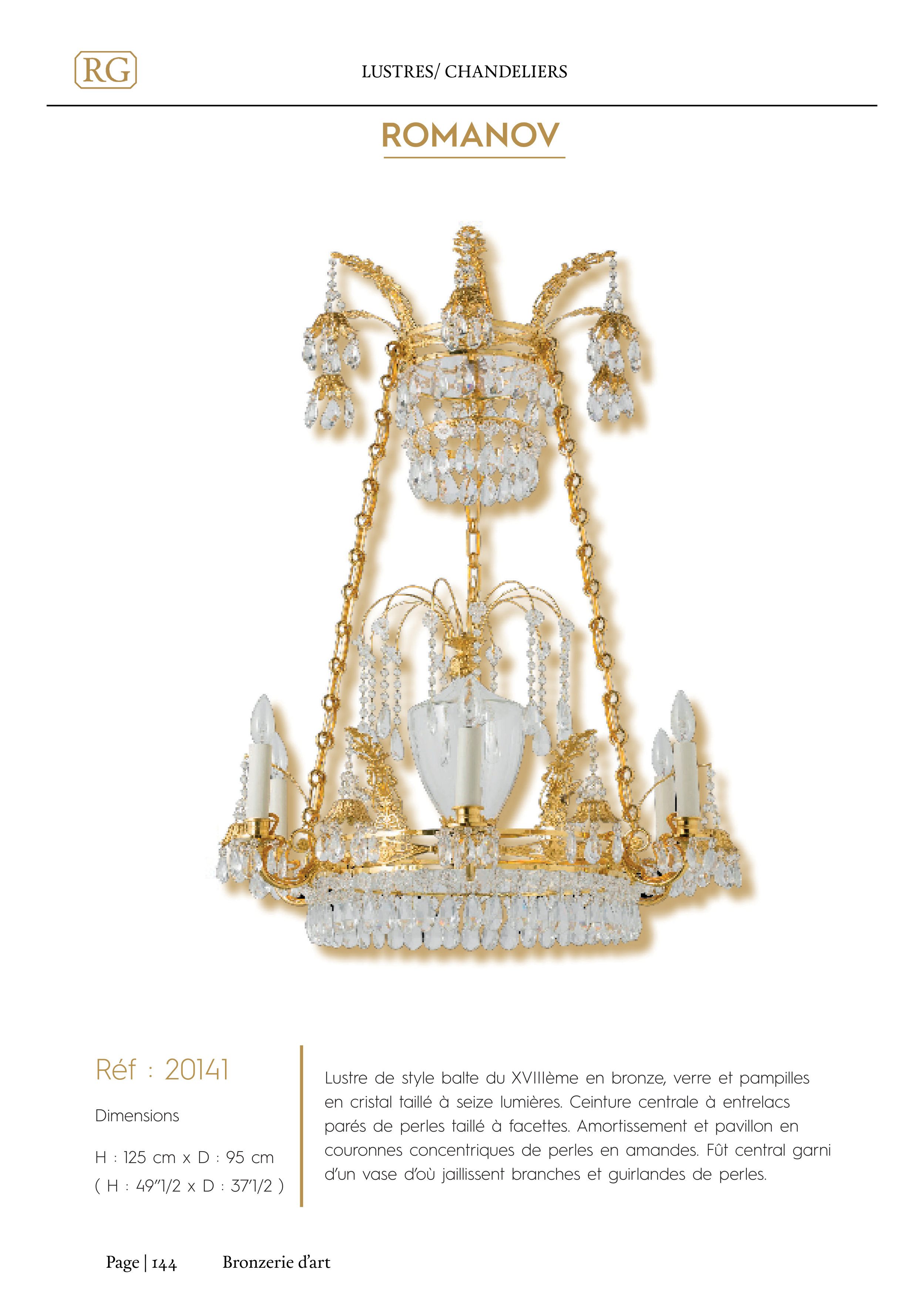 en cristal taillé à seize lumières. Ceinture centrale à entrelacs