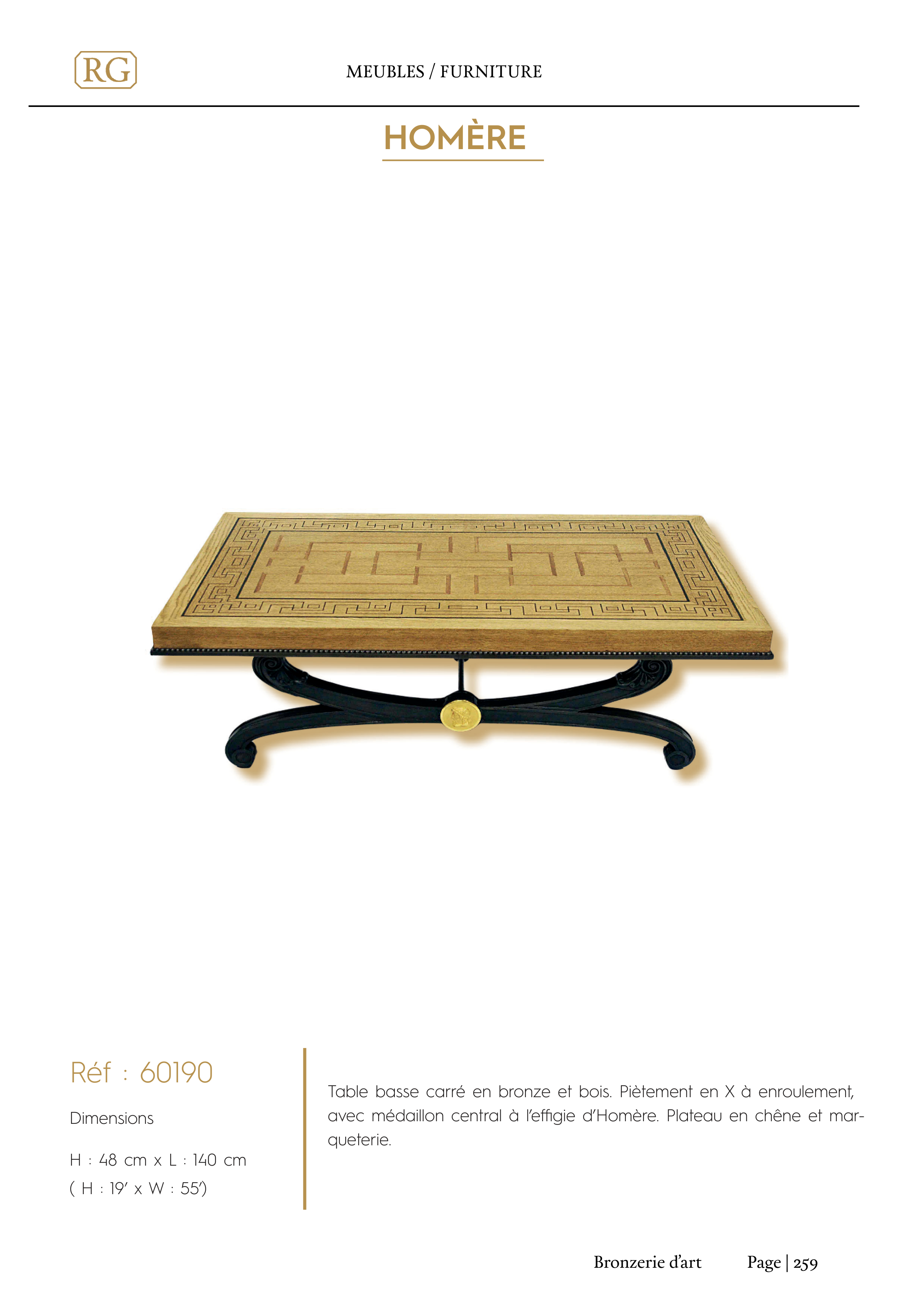 avec médaillon central à l’effi gie d’Homère. Plateau en chêne et mar-