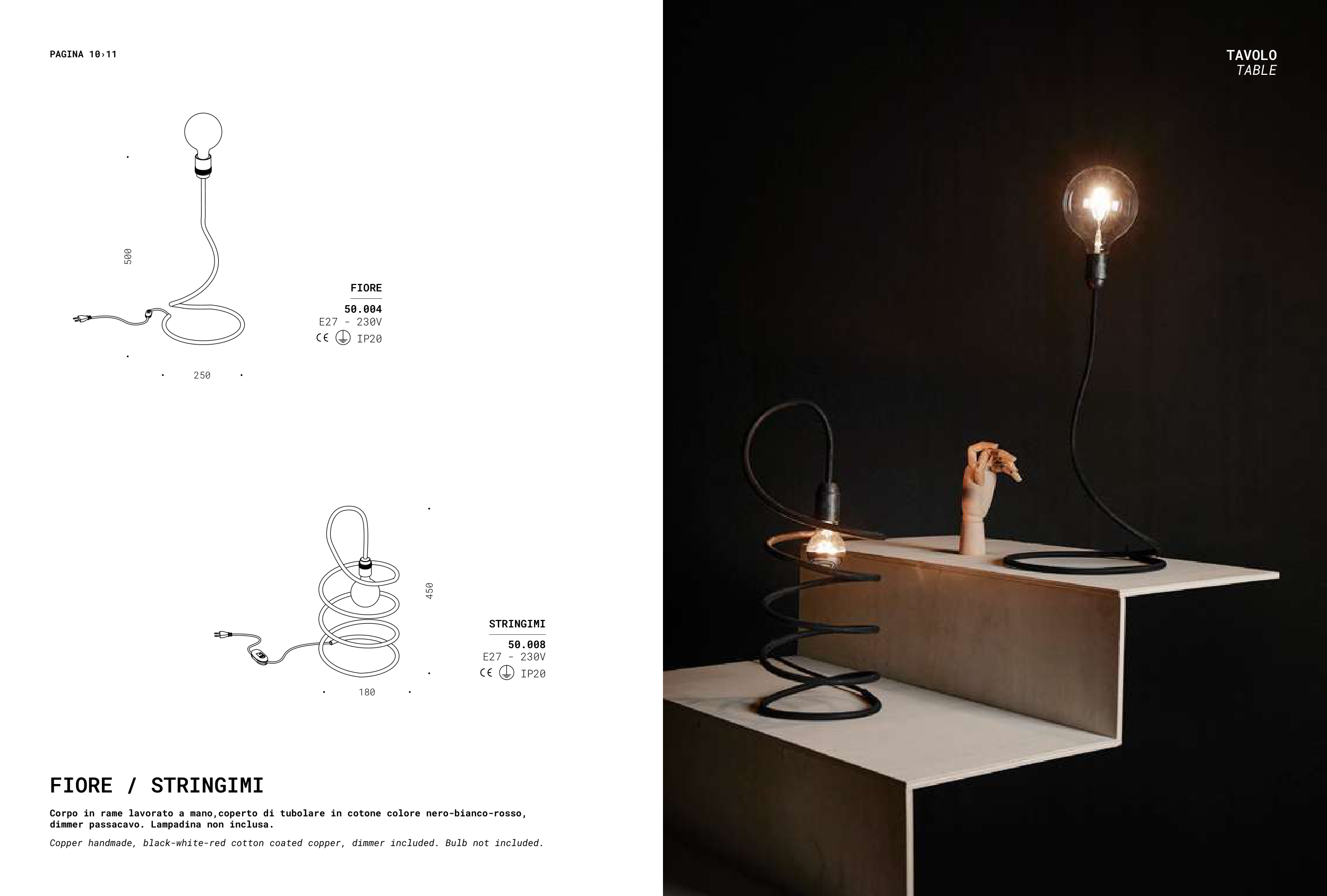 dimmer passacavo. Lampadina non inclusa.