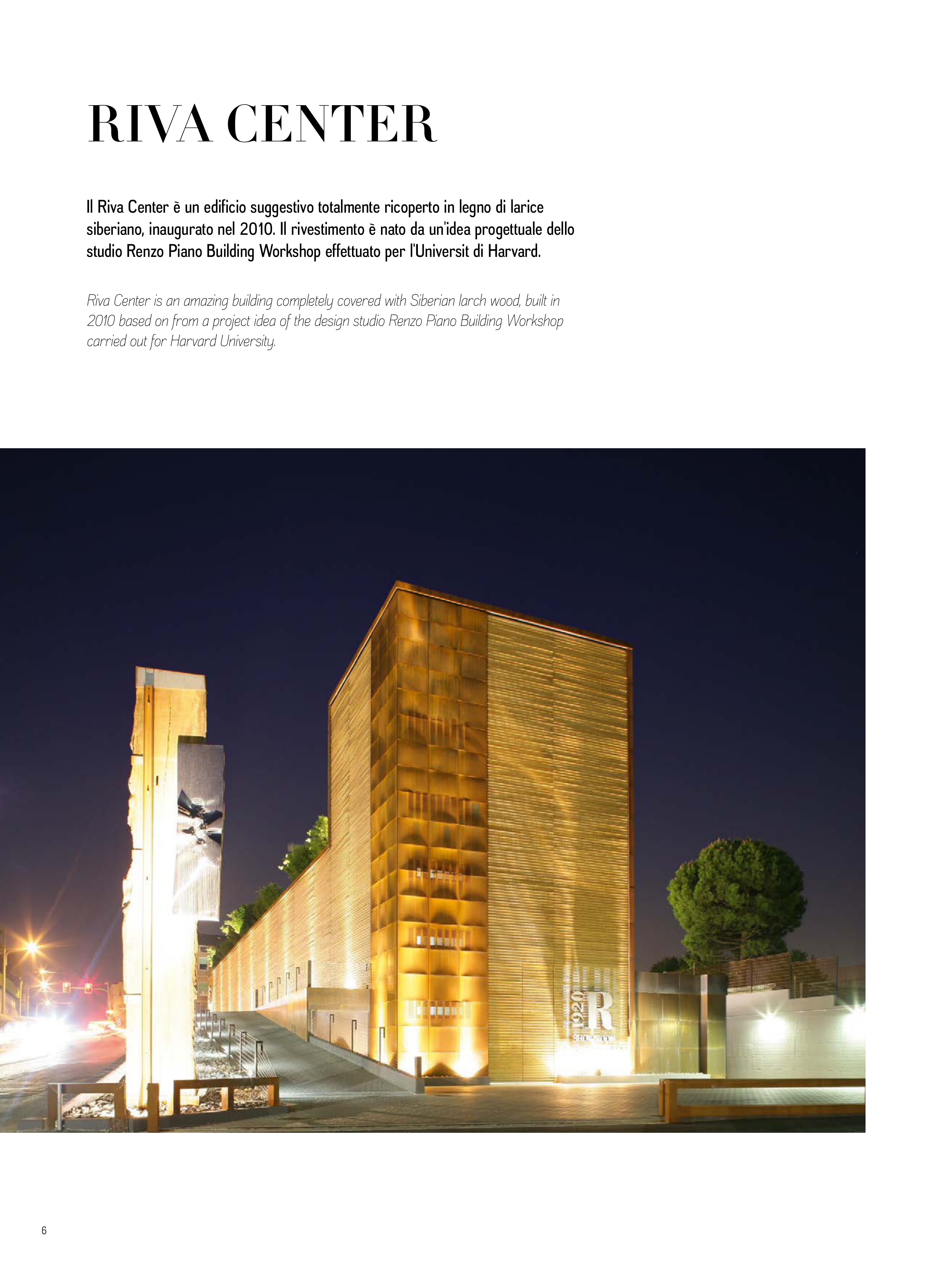 Il Riva Center è un edificio suggestivo totalmente ricoperto in legno di larice