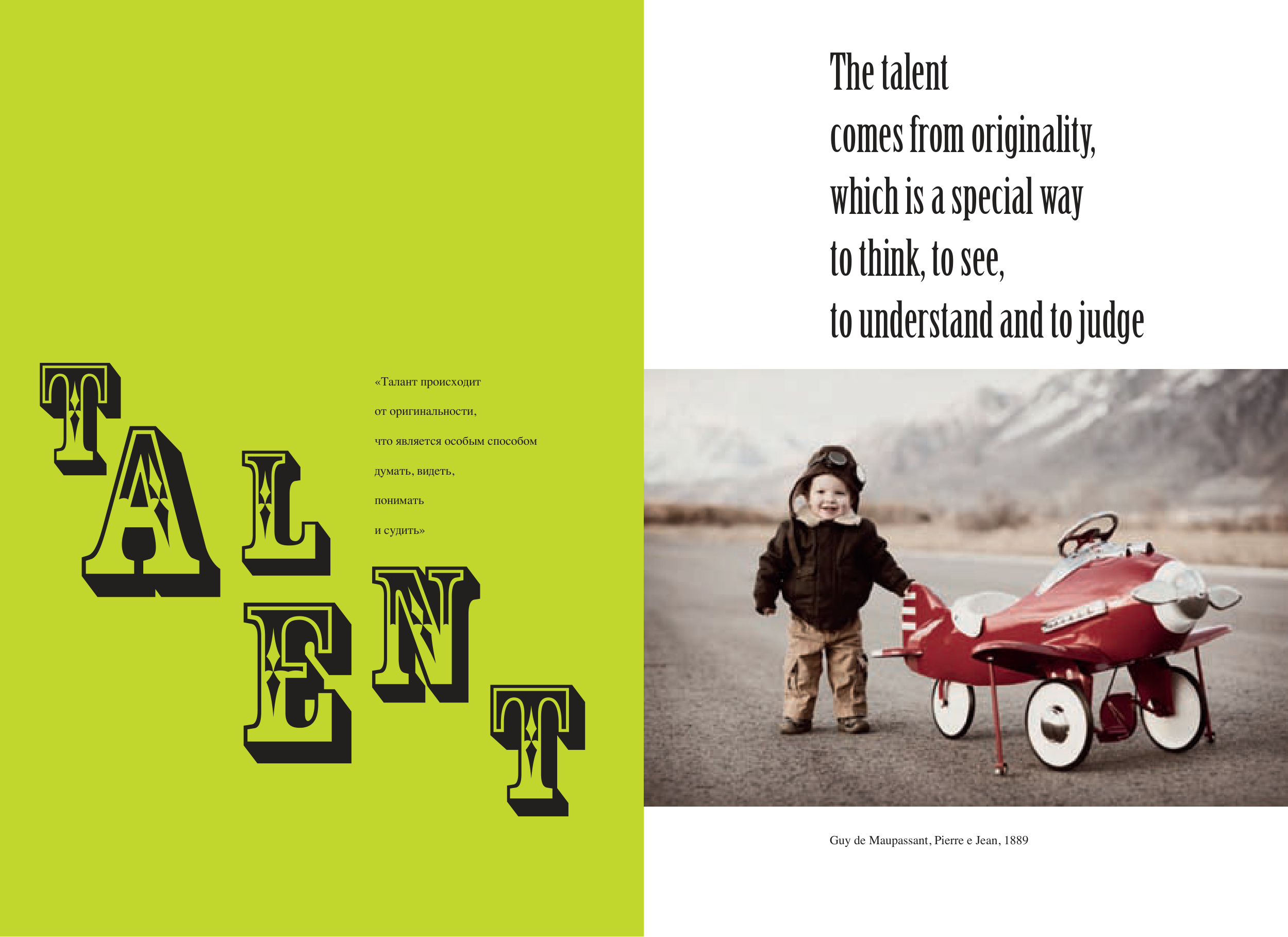 TAL ENT «Талант происходит от оригинальности, что является особым способом думать, видеть, понимать и судить» The talent comes from originality, which is a special way to think, to see, to understand and to judge Guy de Maupassant, Pierre e Jean, 1889