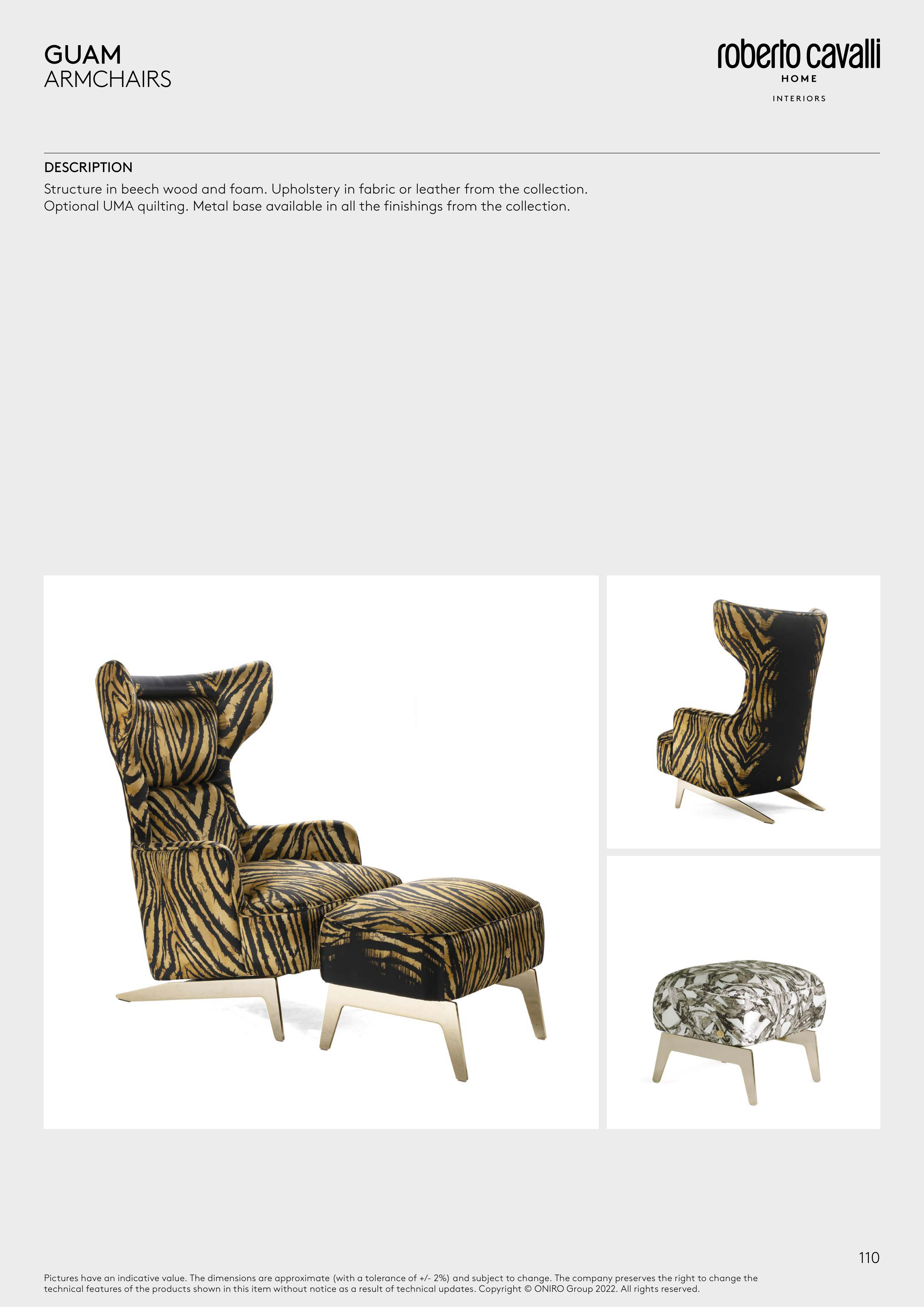 Optional UMA quilting. Metal base available in all the finishings from the collection.